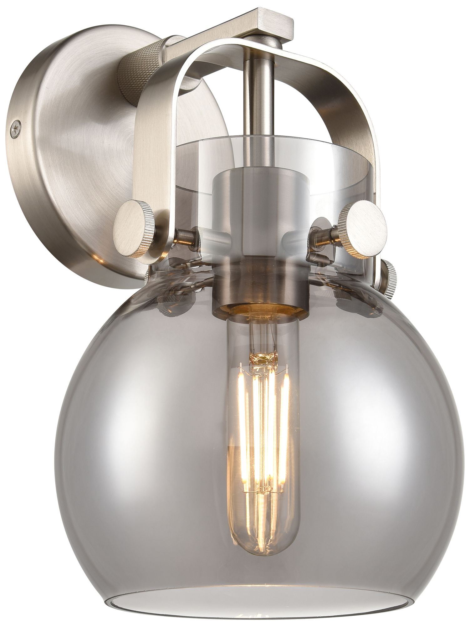 Pilaster II Sphere 9.75" High Satin Nickel Sconce With Smoke Shade