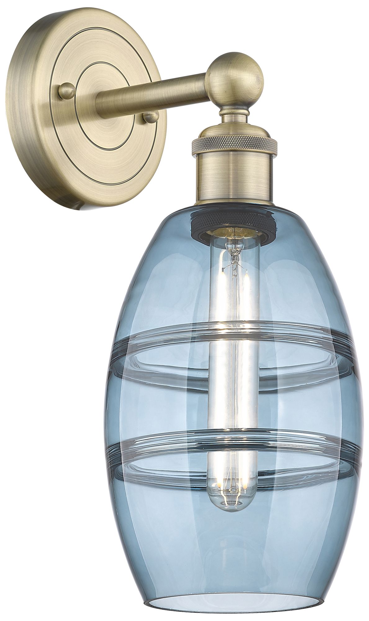 Edison Vaz 10.38" High Antique Brass Sconce With Princess Blue Shade