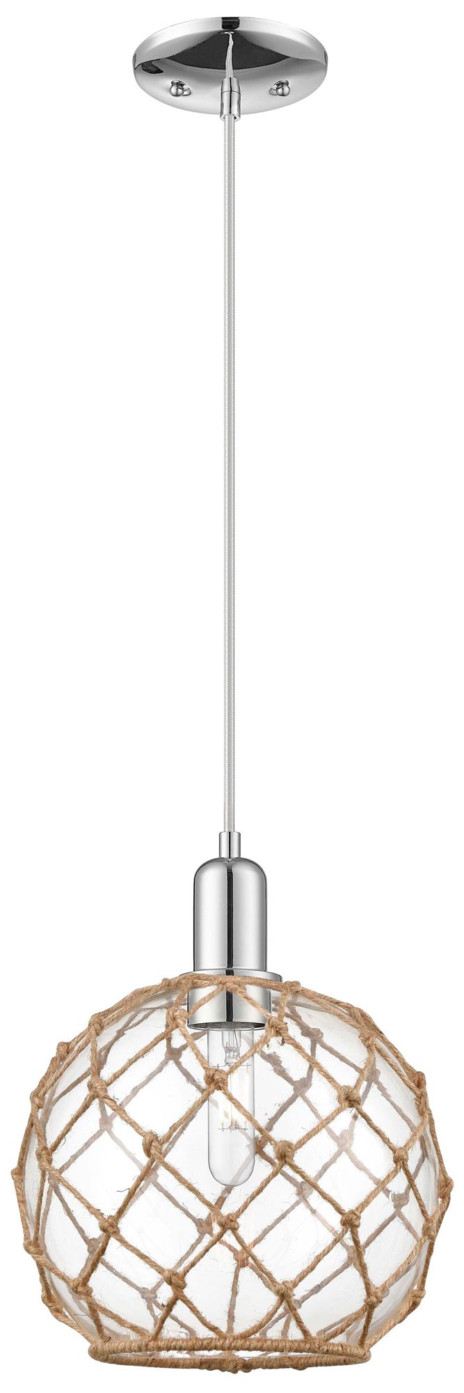 Arcadia Farmhouse Rope 10"W Chrome Cord Pendant w/ Clear Brown Shade