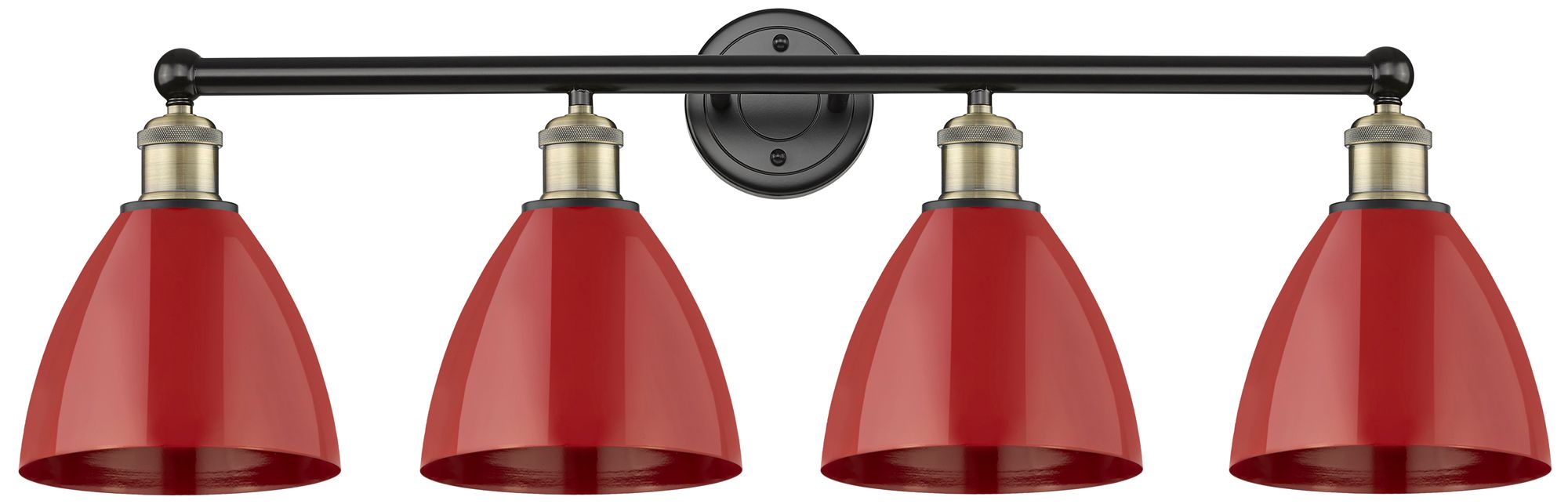 Plymouth Dome 34.5"W 4 Light Black Antique Brass Bath Light With Red S