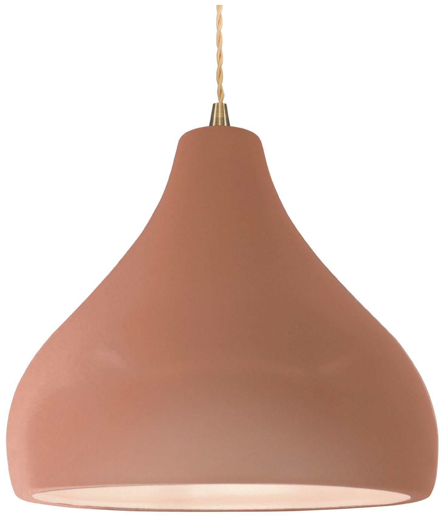 Radiance 13.5"W Large Droplet Brass Beige Cord Pendant w/ Adobe Shade