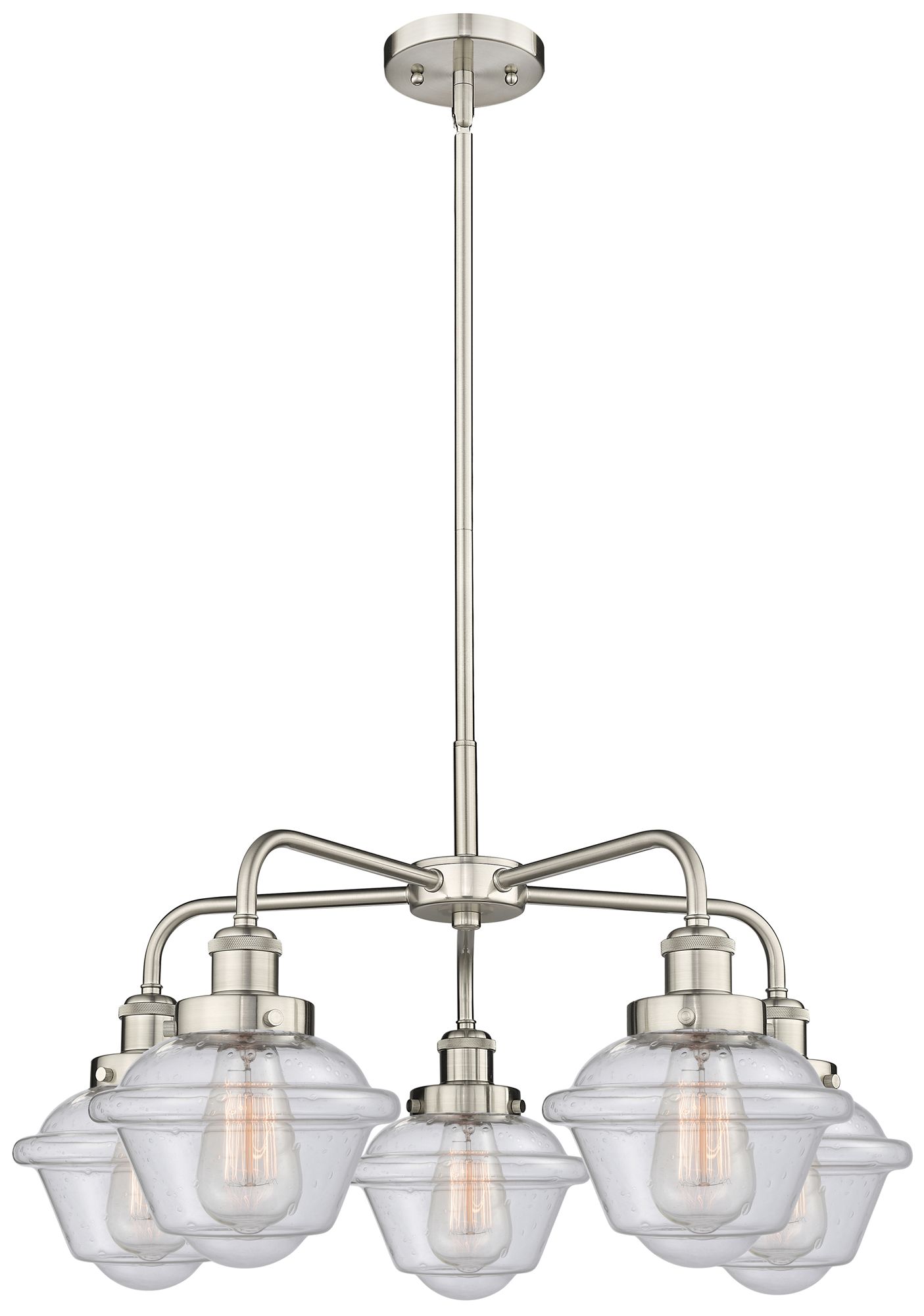 Oxford 24.5"W 5 Light Satin Nickel Stem Hung Chandelier w/ Seedy Shade