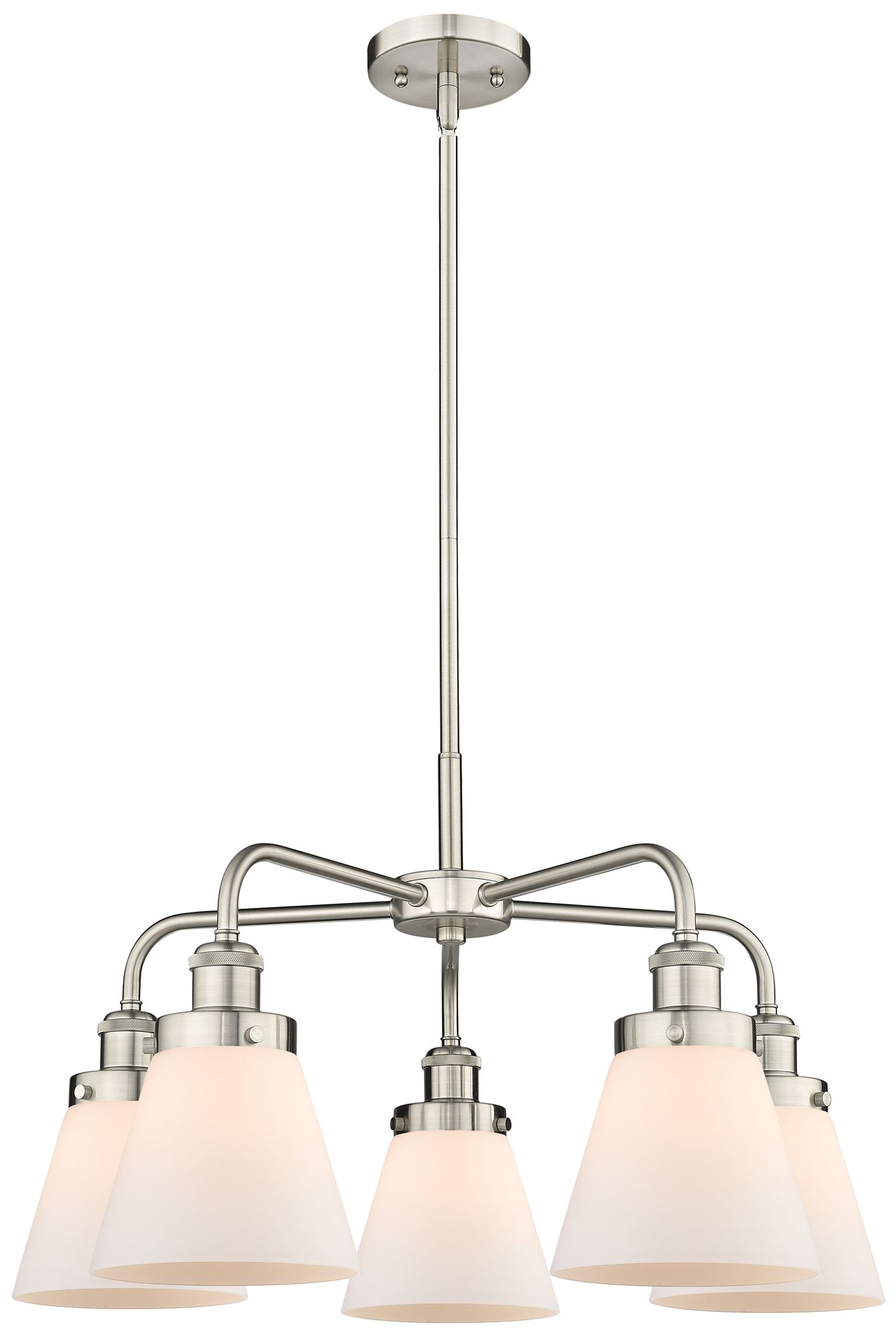 Cone 24.25"W 5 Light Satin Nickel Stem Hung Chandelier w/ White Shade