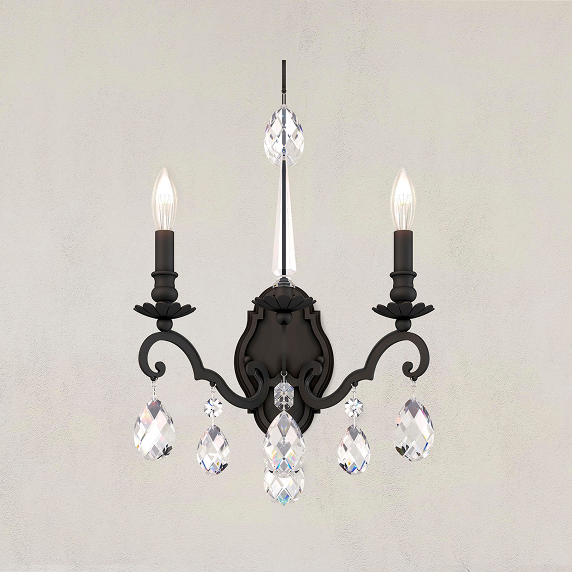 Renaissance Nouveau 21"H x 15"W 2-Light Crystal Wall Sconce in Bl