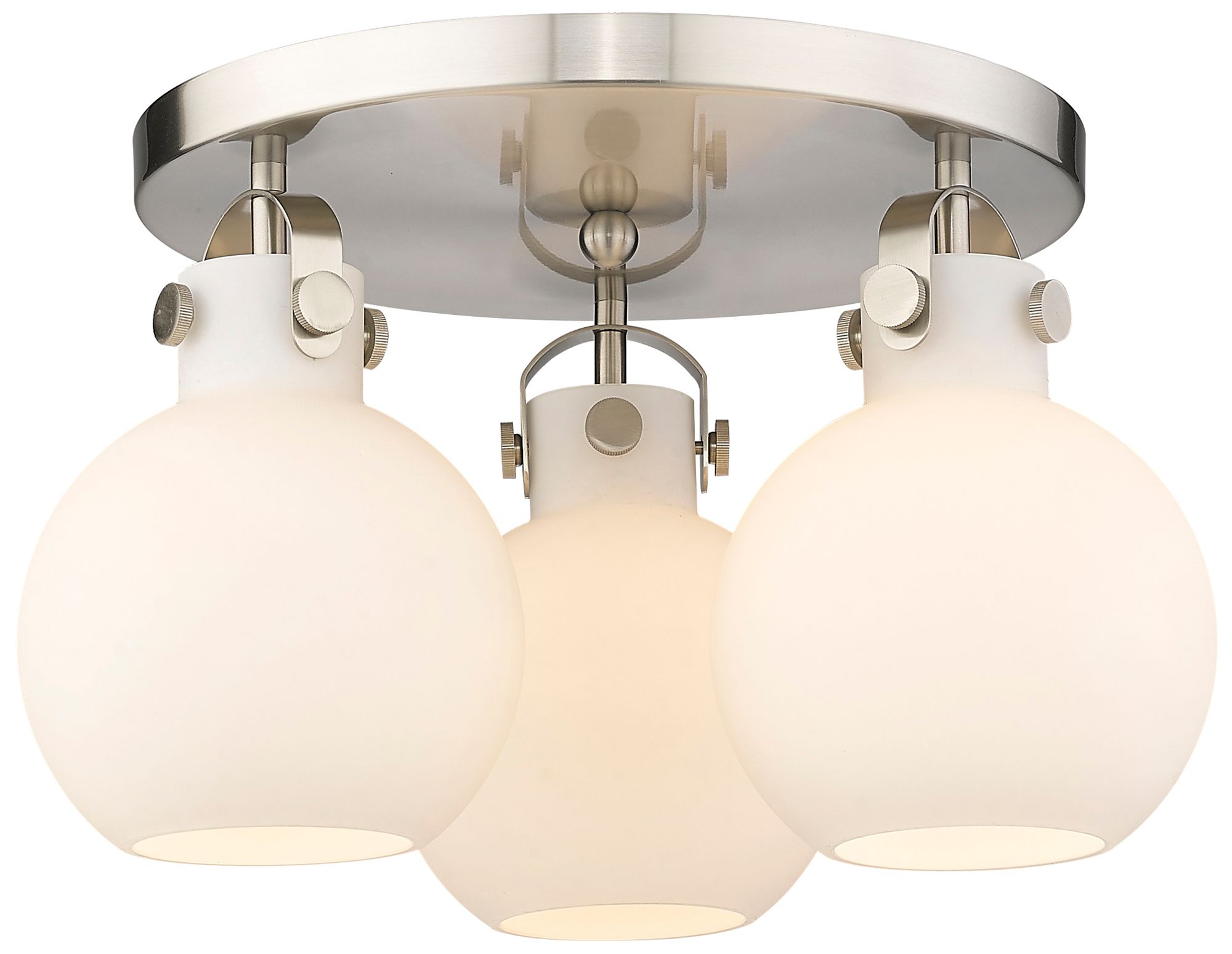 Newton Sphere 19.63"W 3 Light Satin Nickel Flush Mount w/ Matte White