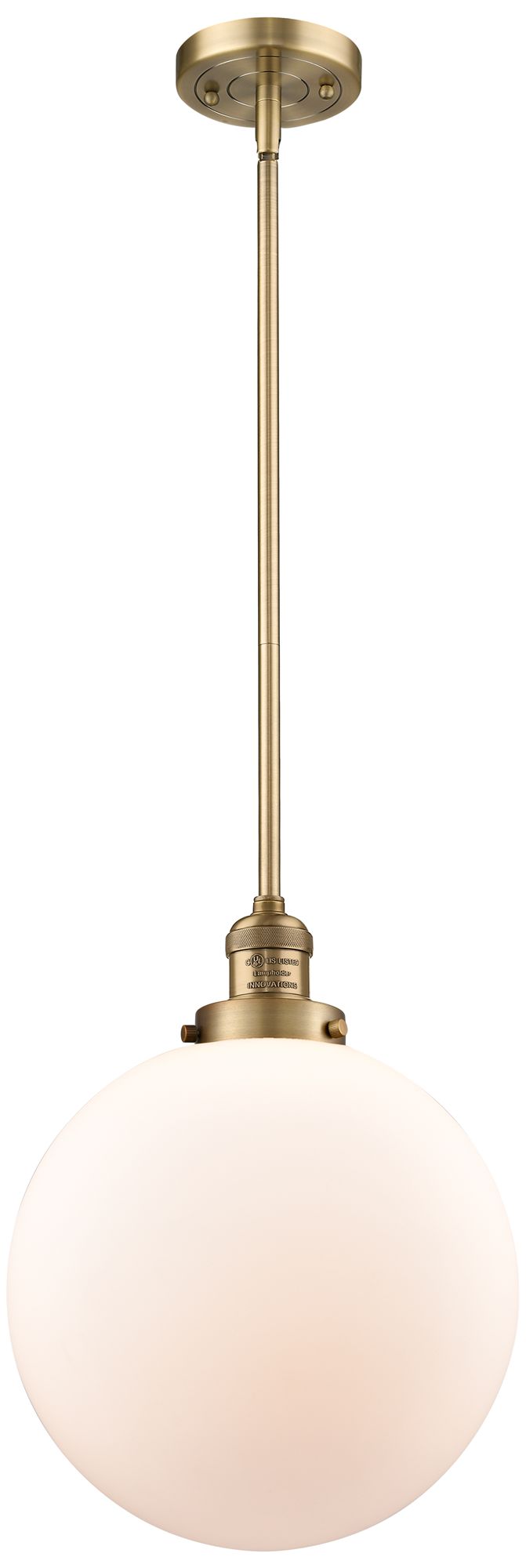 Franklin Beacon 12" Brushed Brass Stemmed Mini Pendant w/ White Shade