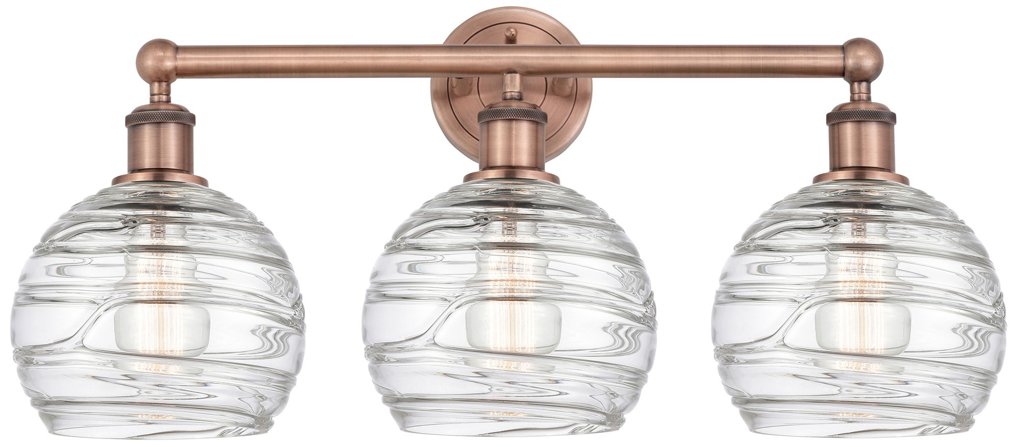 Athens 26"W 3 Light Antique Copper Bath Vanity Light w/ Deco Swirl Sha