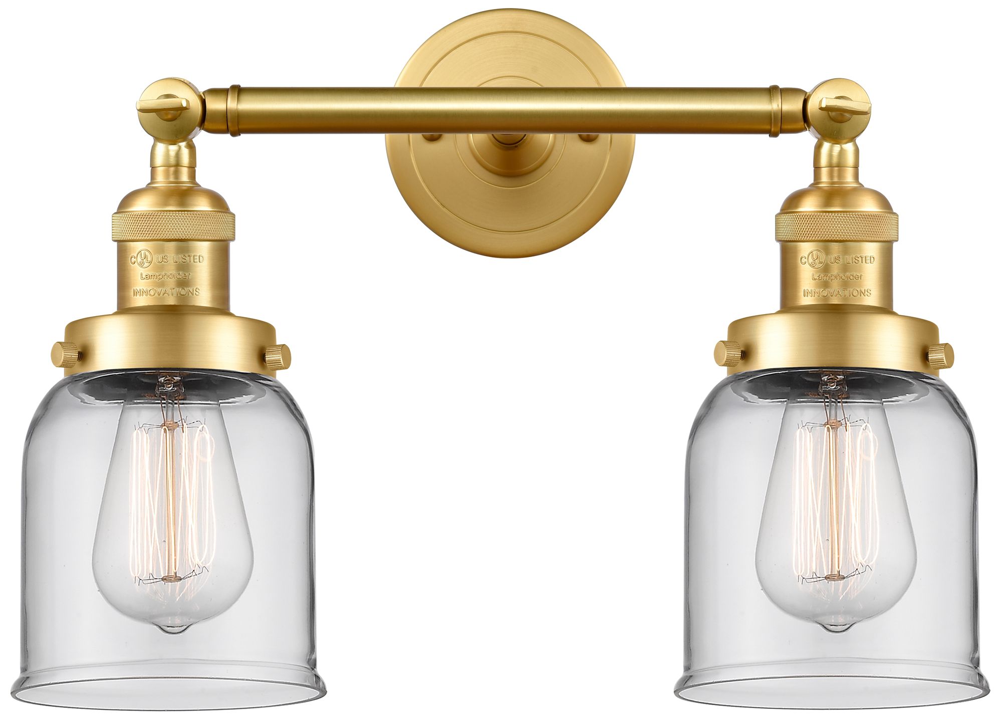 Small Bell 16" 2-Light Satin Gold Bath Light w/ Clear Shade