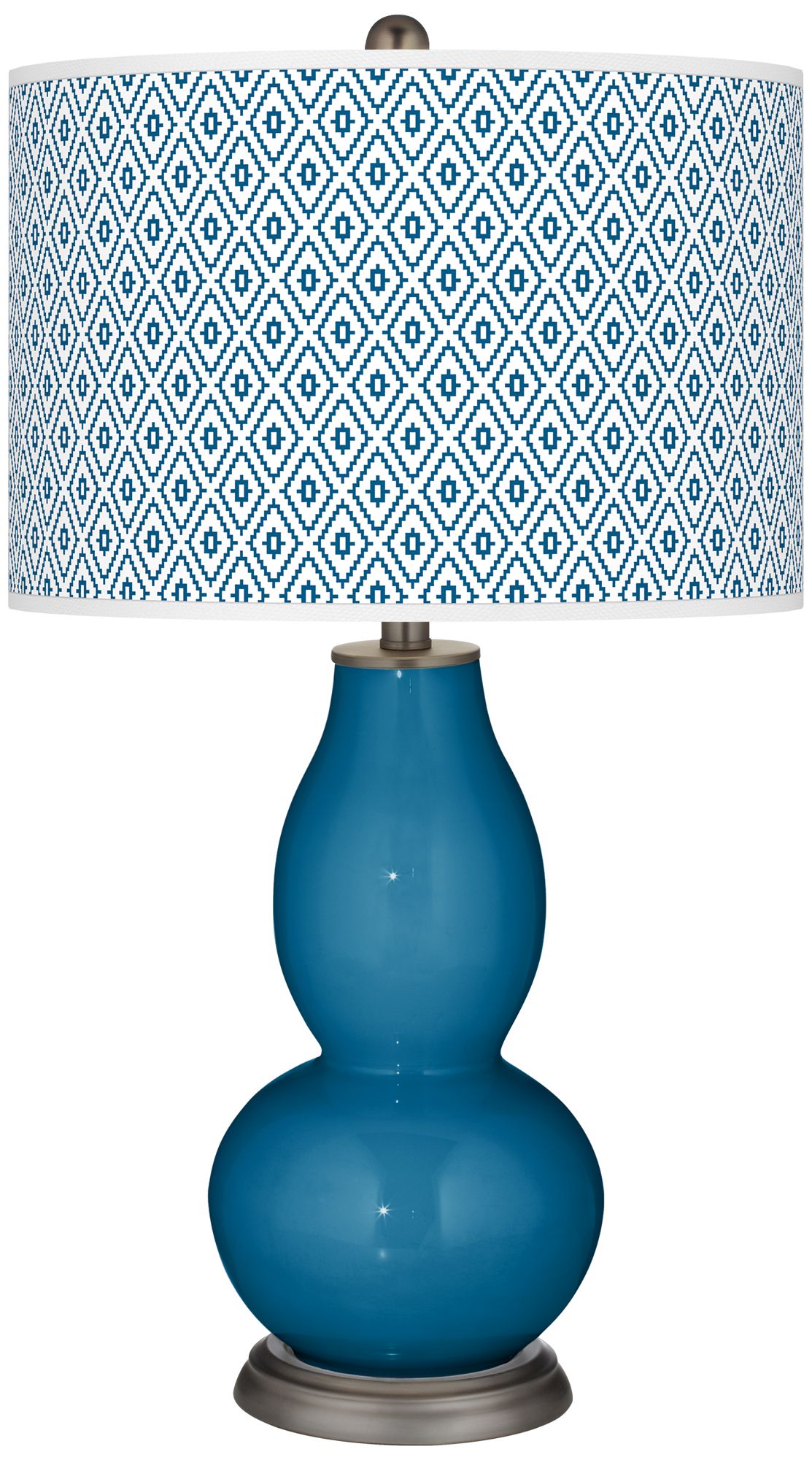Color Plus Double Gourd 29 1/2" Diamonds Shade Mykonos Blue Table Lamp