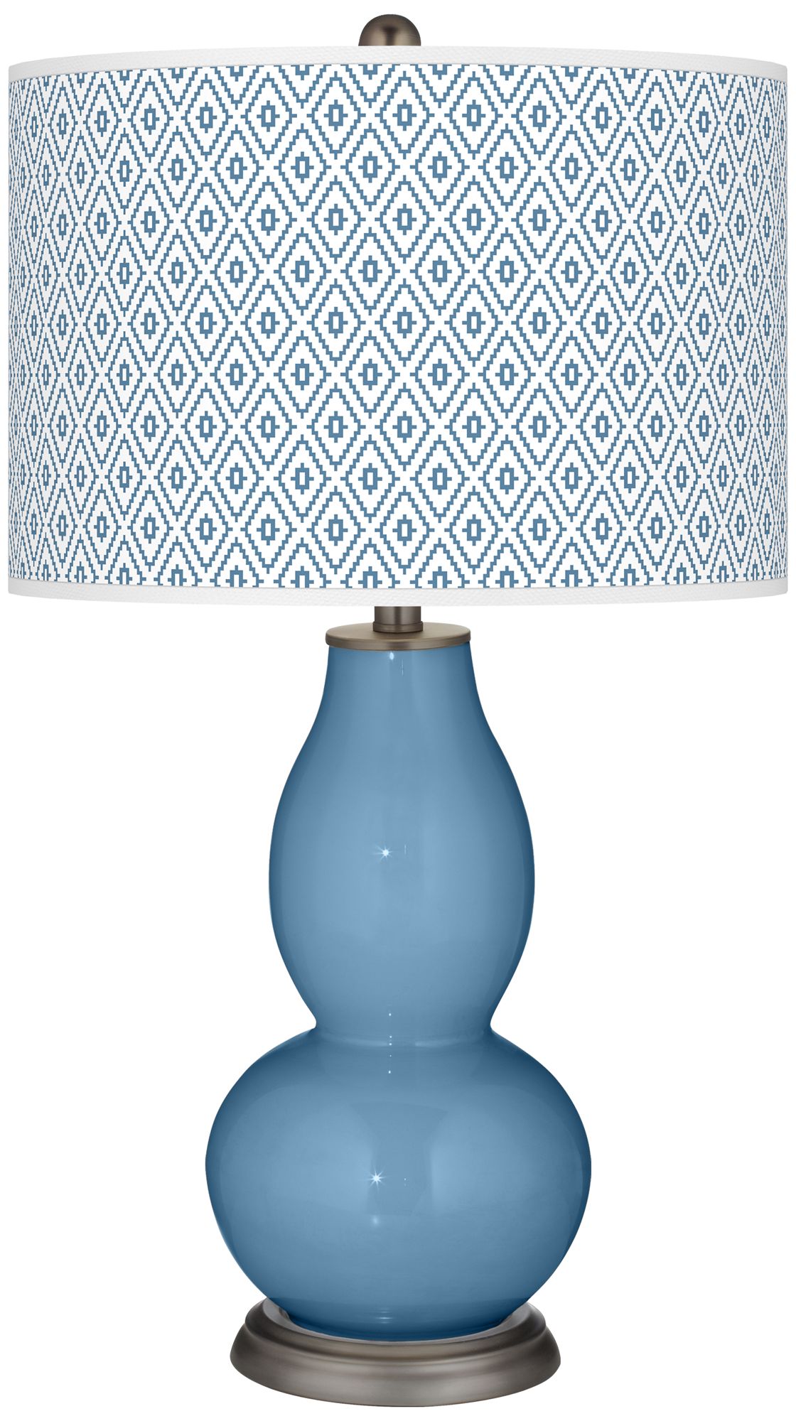 Color Plus Double Gourd 29 1/2" Diamonds Shade Secure Blue Table Lamp