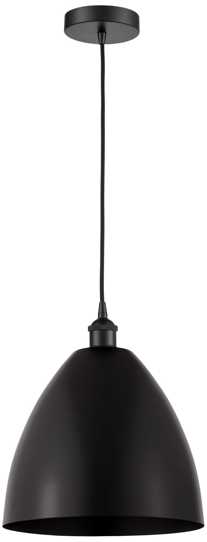 Edison Dome 12" Wide Matte Black Corded Mini Pendant w/ Matte Black Sh