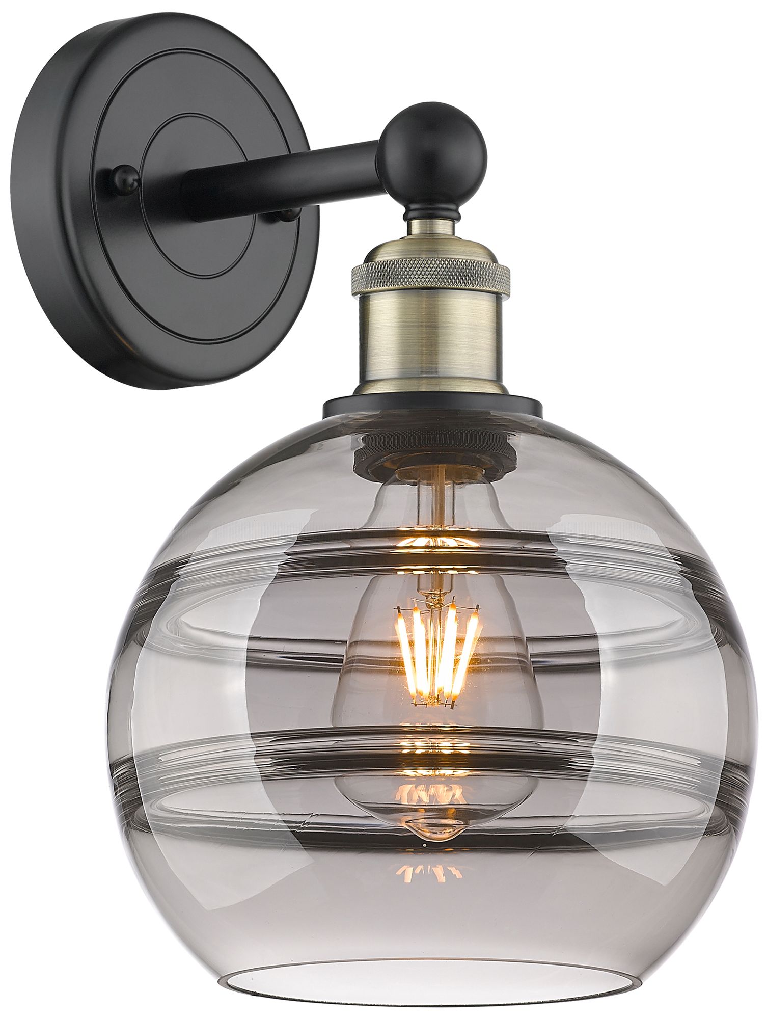 Edison Rochester 12.13"H Black Antique Brass Sconce w/ Light Smoke Sha