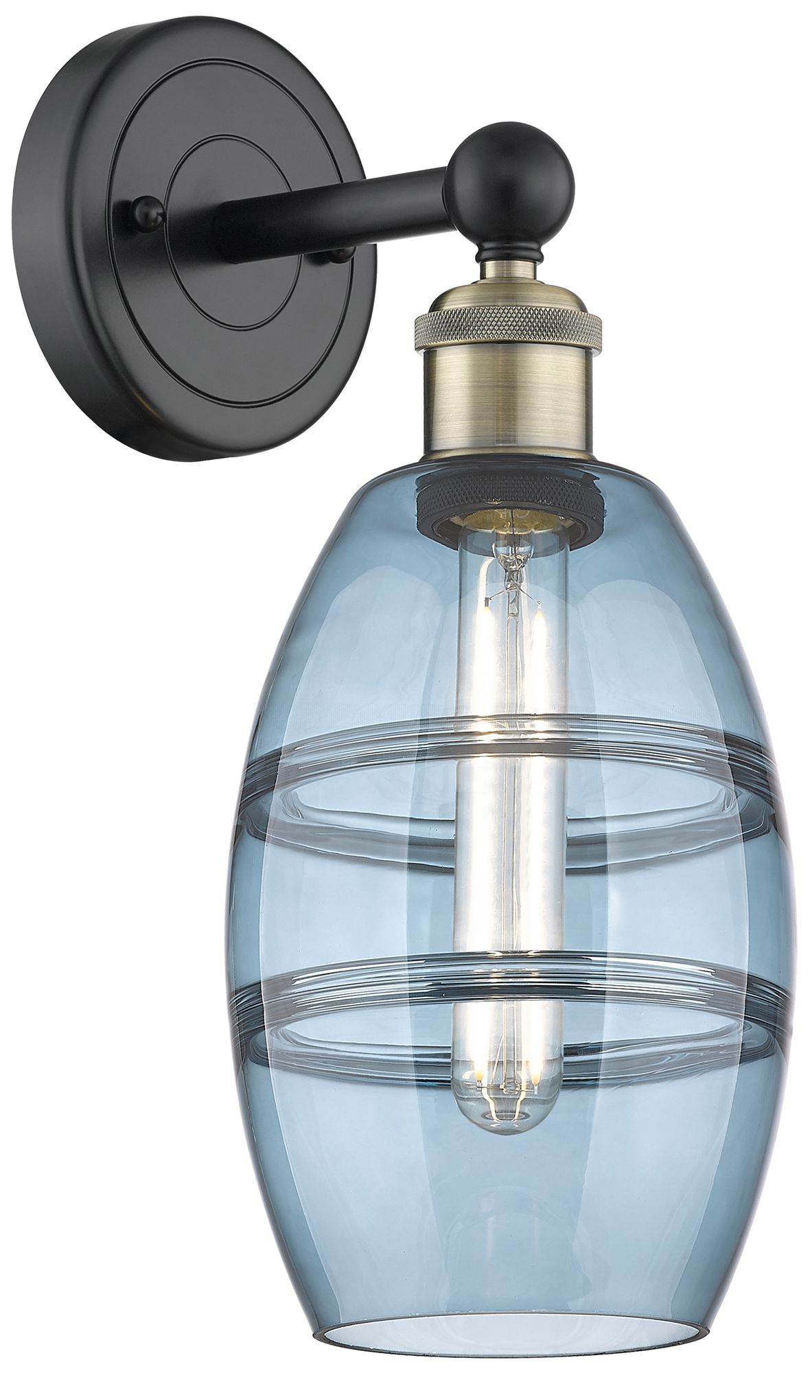 Edison Vaz 10.38" High Black Antique Brass Sconce With Princess Blue S