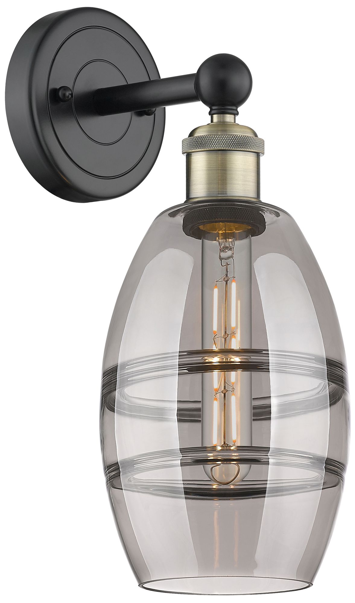 Edison Vaz 10.38" High Black Antique Brass Sconce With Light Smoke Sha