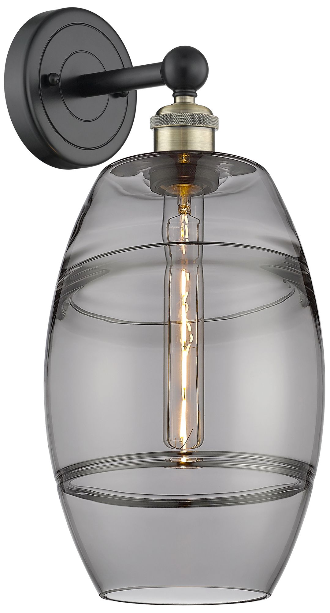 Edison Vaz 12.13" High Black Antique Brass Sconce With Light Smoke Sha