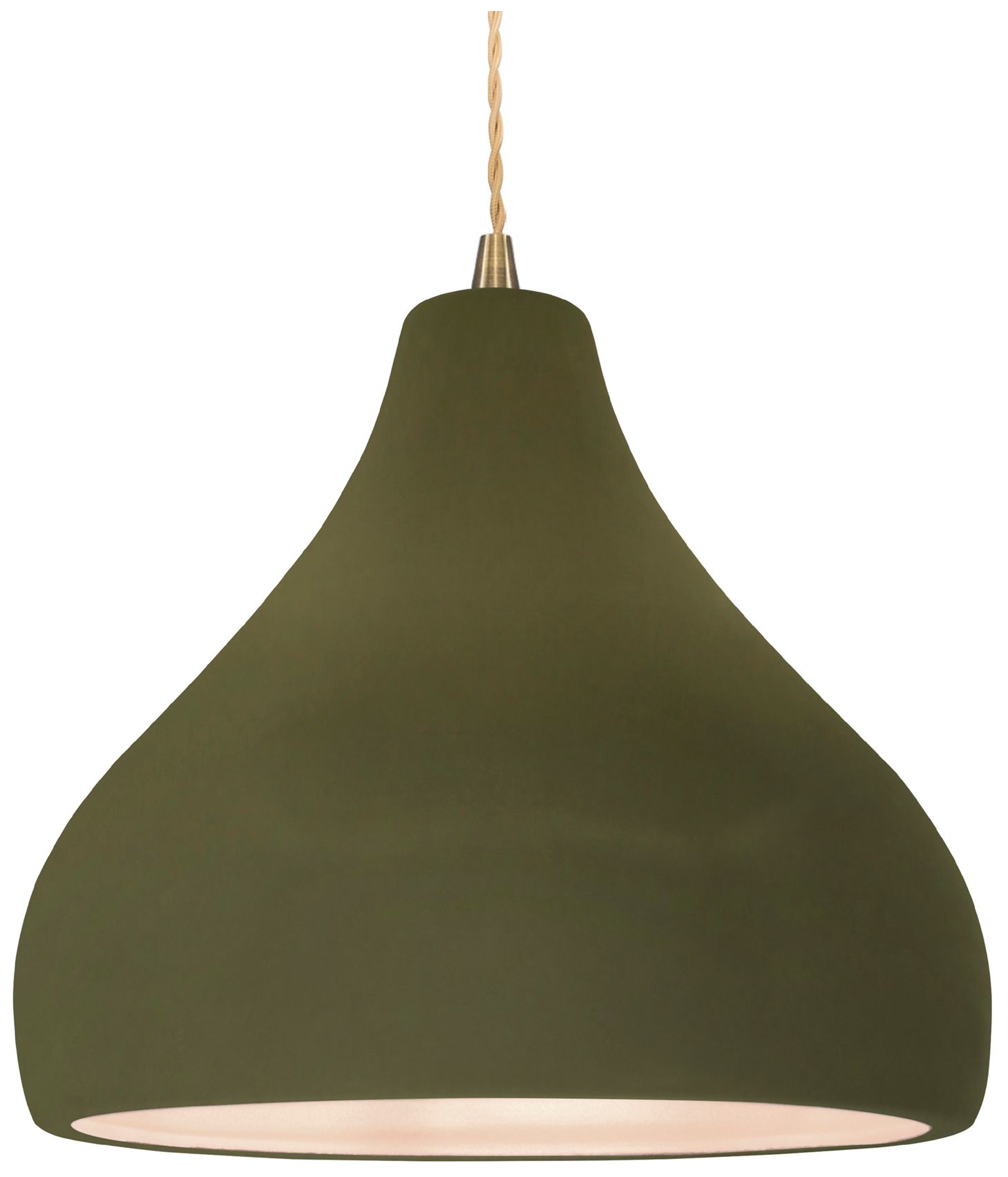 Radiance 13.5"W Large Droplet Brass Beige Cord Pendant w/ Matte Green