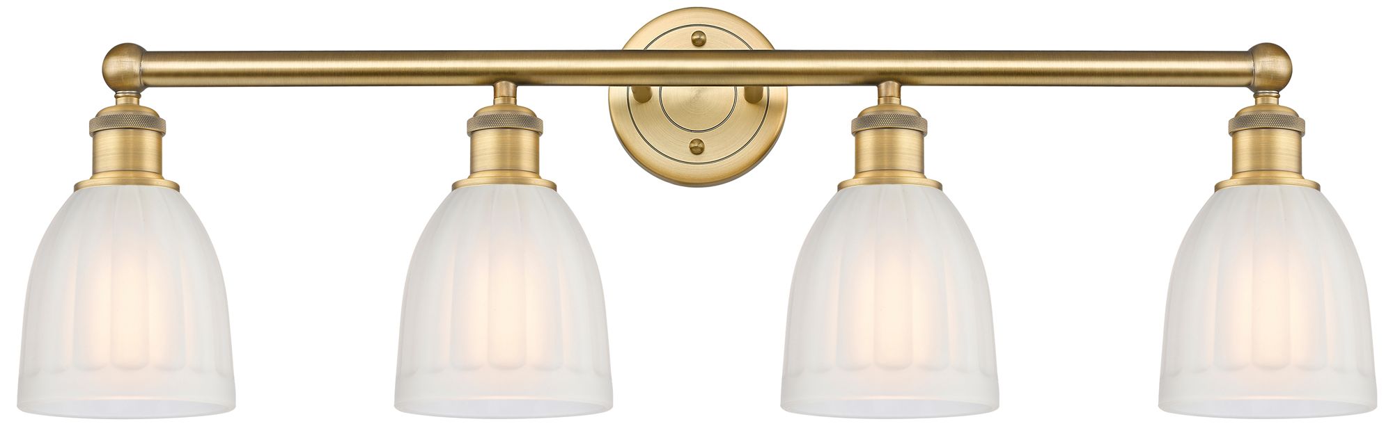 Brookfield 32.75"W 4 Light Brushed Brass Bath Vanity Light With White