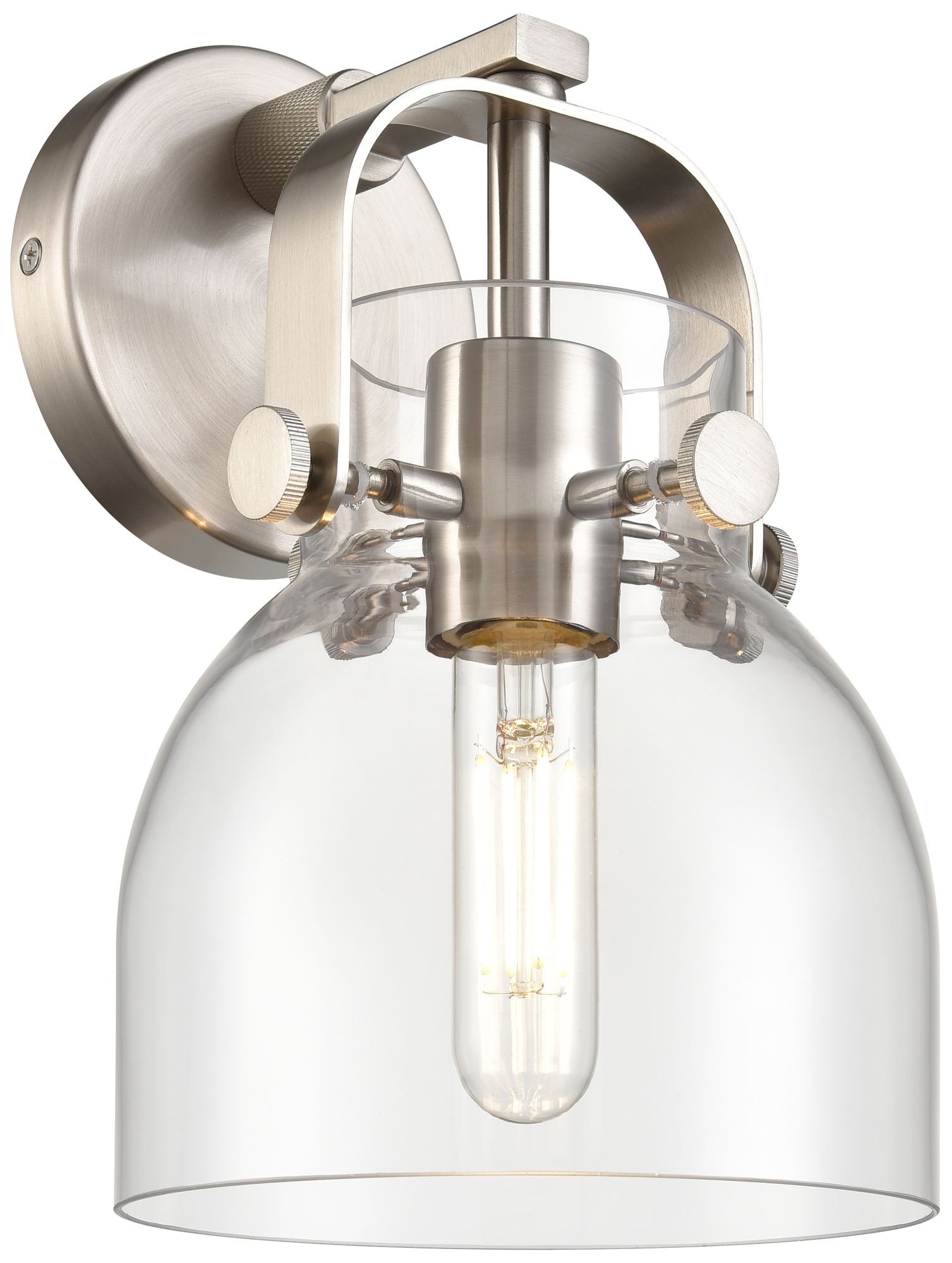 Pilaster II Bell 9.75" High Satin Nickel Sconce With Clear Shade