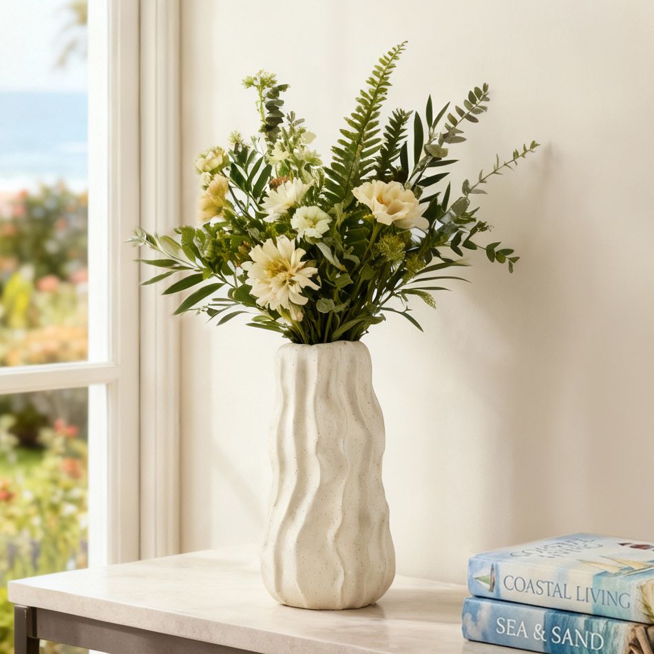 Caldera 13" High White Rippled Ceramic Vase