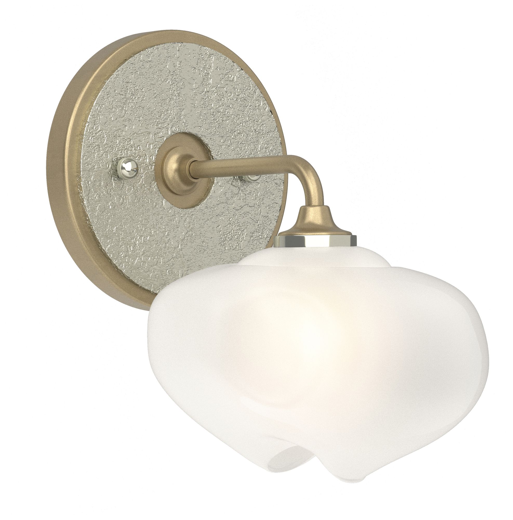 Ume 8.5"H Sterling Accented Curved Arm Gold Bath Sconce w/ Frosted Sha