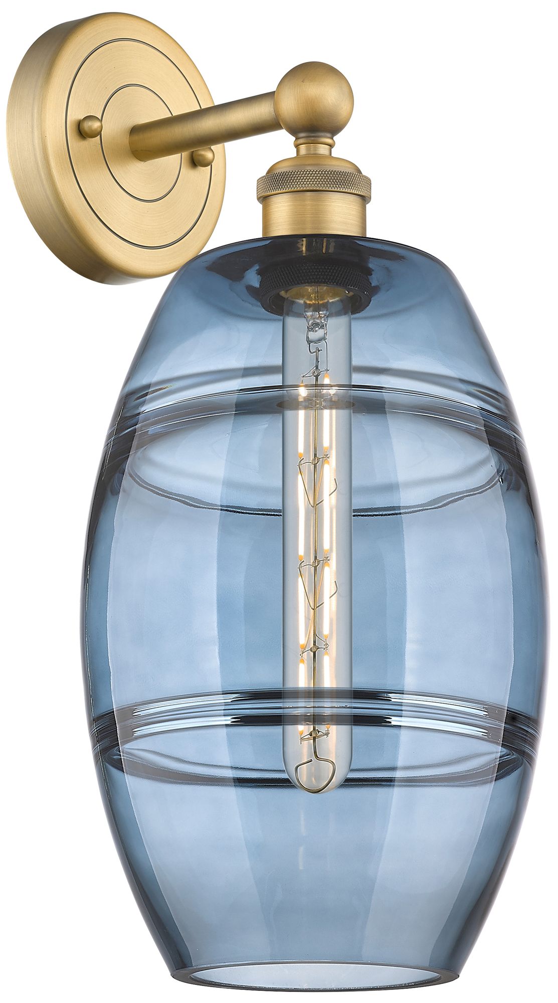 Edison Vaz 12.13" High Brushed Brass Sconce With Princess Blue Shade