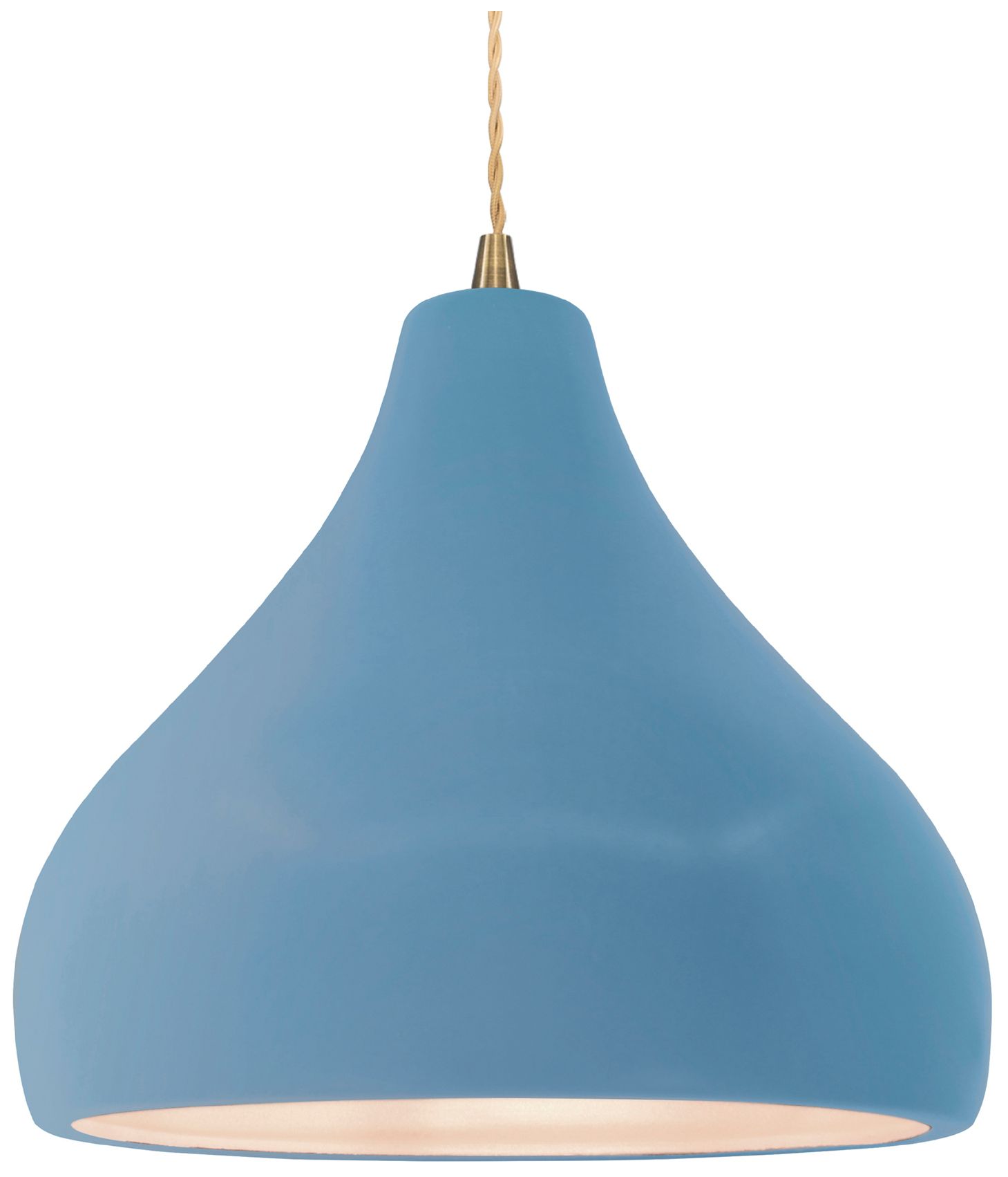 Radiance 13.5"W Large Droplet Brass Beige Cord Pendant w/ Sky Blue Sha