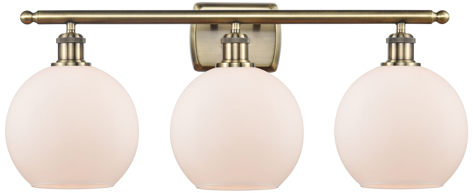 Ballston Athens 8" 3 Light 26" Bath Light - Antique Brass - White