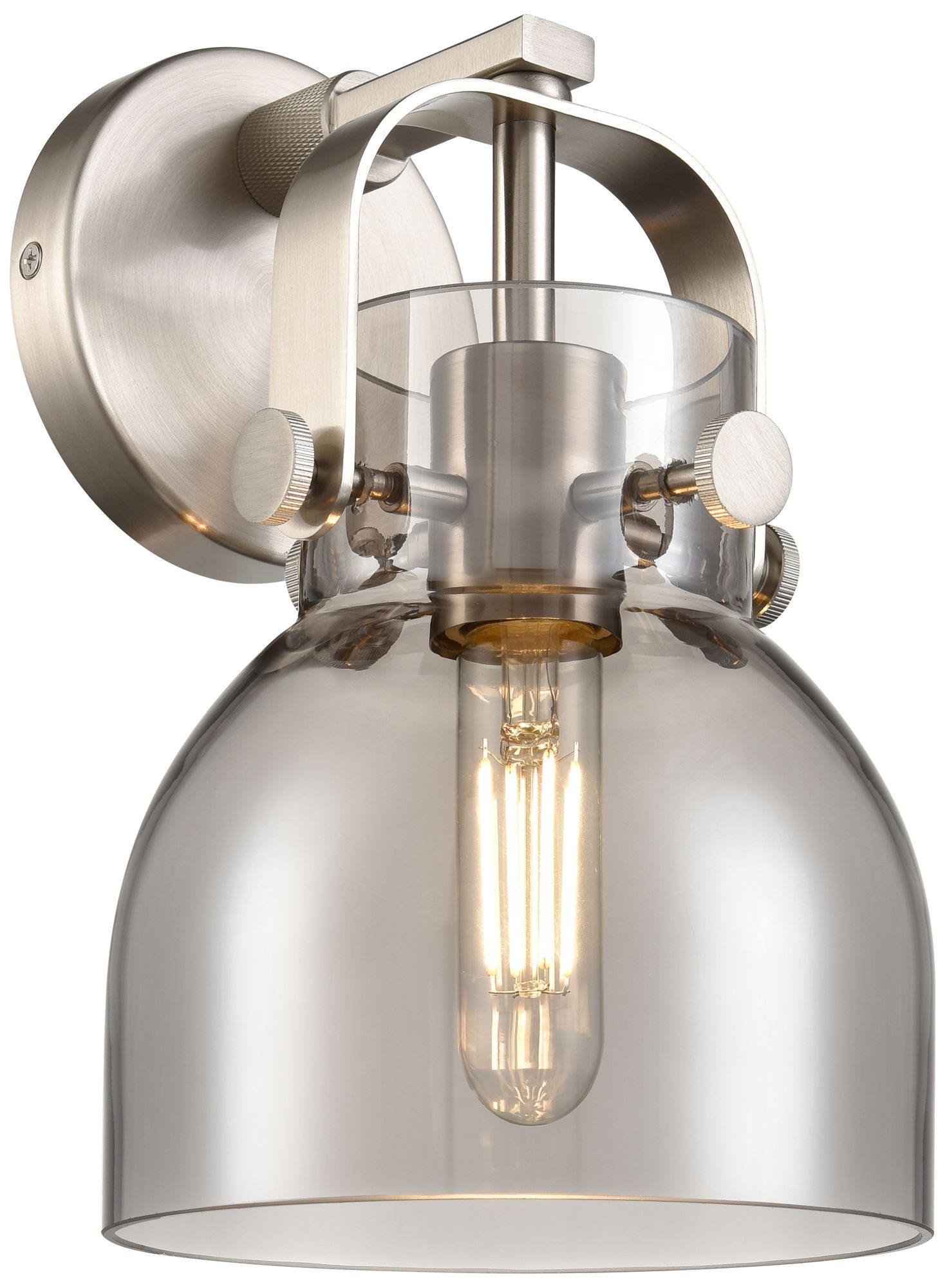 Pilaster II Bell 9.75" High Satin Nickel Sconce With Smoke Shade
