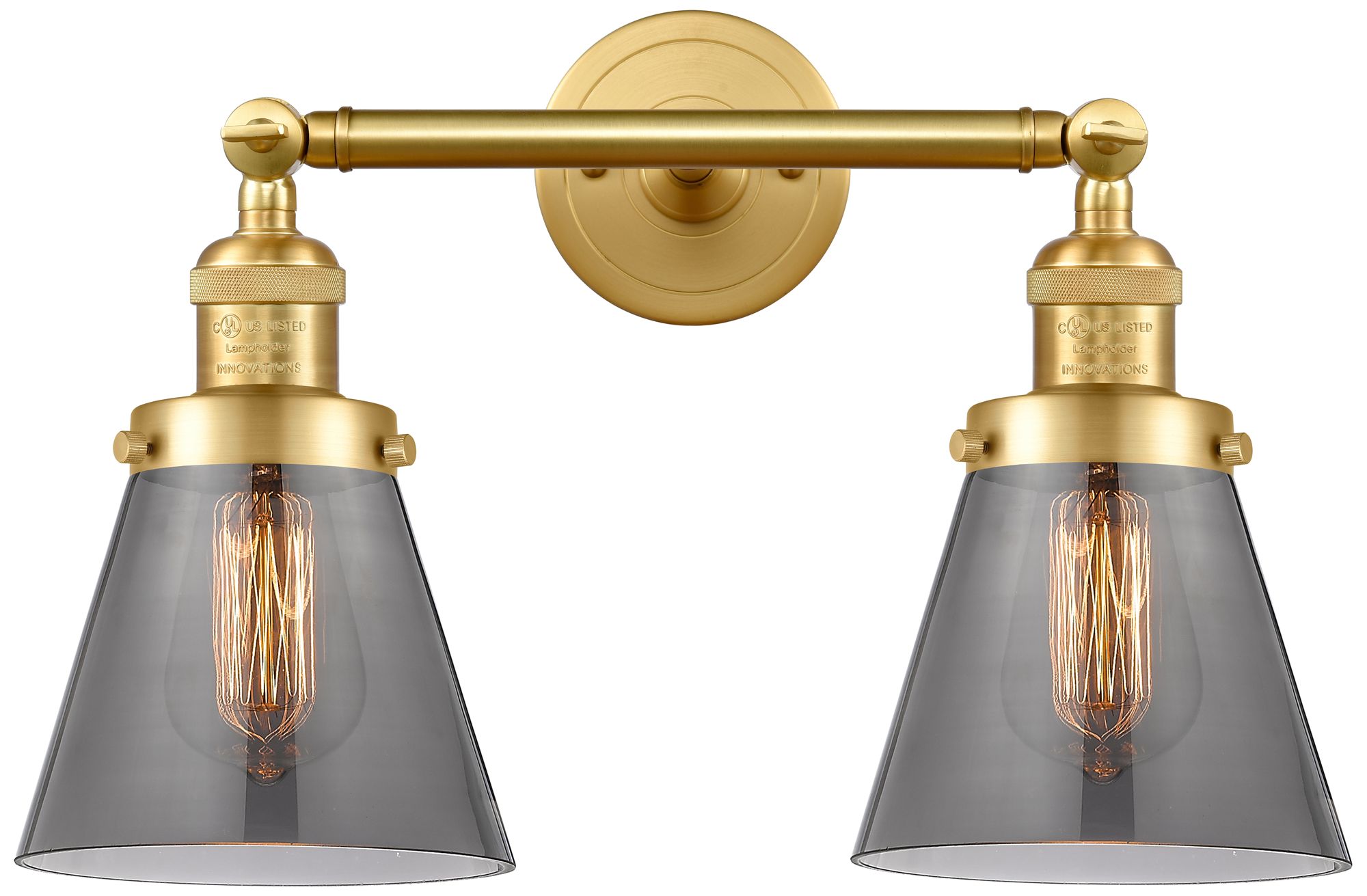 Small Cone 16" 2-Light Satin Gold Bath Light w/ Plated Smoke Shade