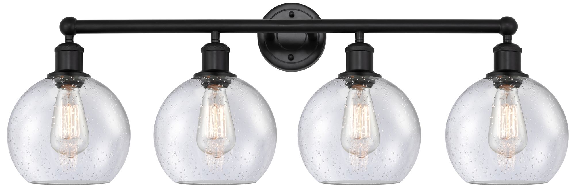 Athens 35" Wide 4 Light Matte Black Bath Vanity Light With Seedy Shade