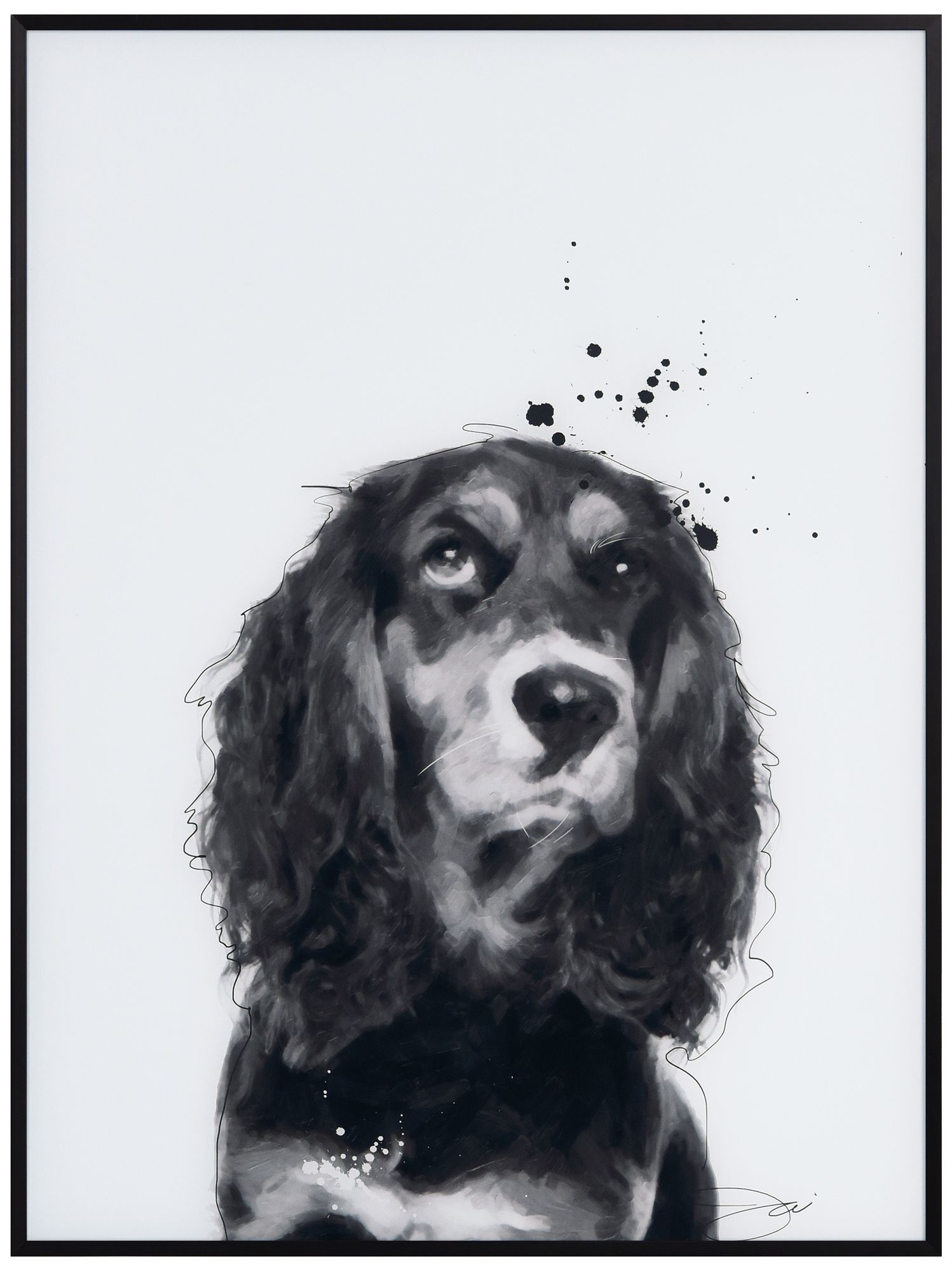 Cocker Spaniel" Black & White Pet Portraits on Art Glass Framed Al