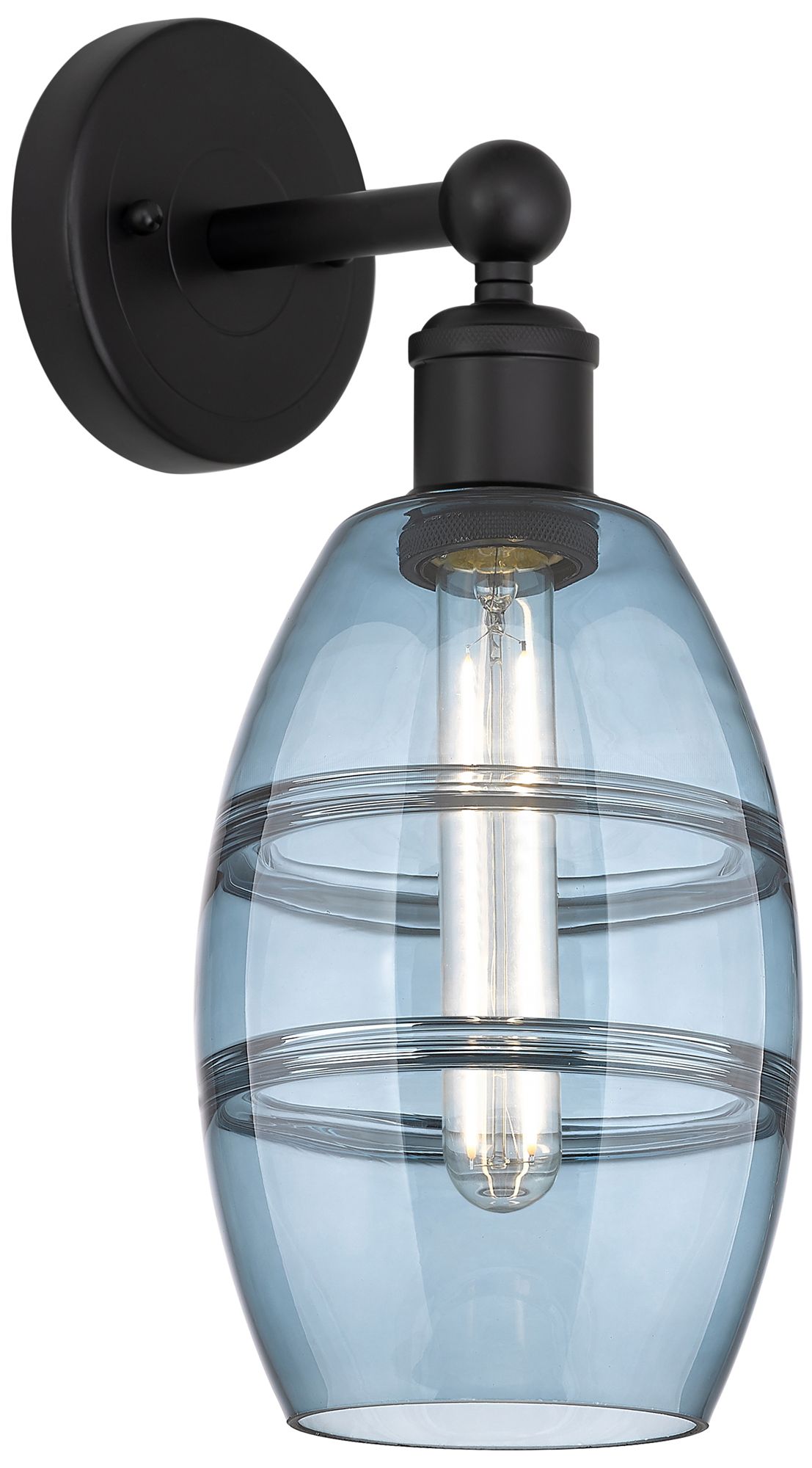 Edison Vaz 10.38" High Matte Black Sconce With Princess Blue Shade