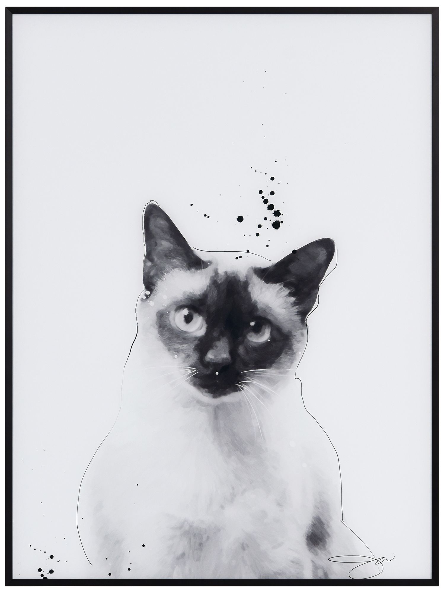 Siamese" Black & White Pet Portraits on Glass Encased Aluminum Fra