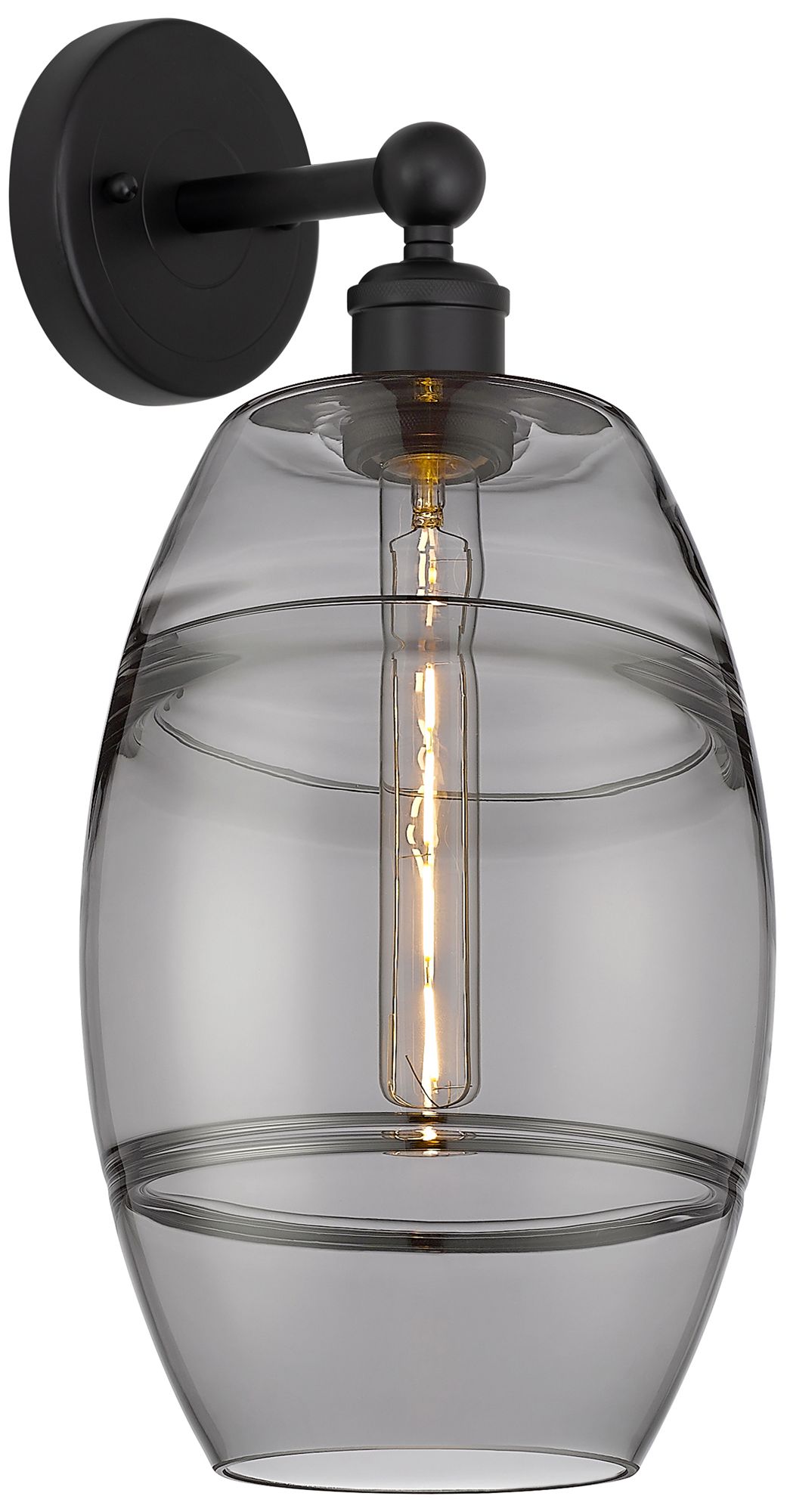 Edison Vaz 12.13" High Matte Black Sconce With Light Smoke Shade