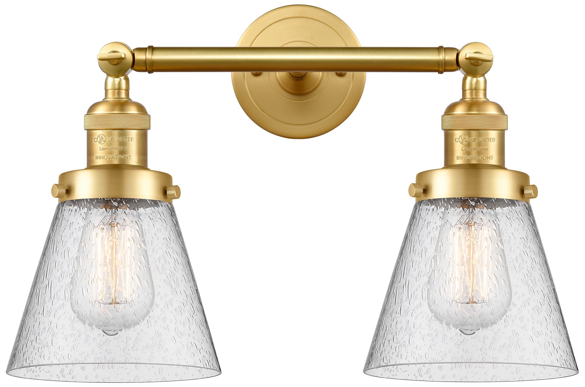 Small Cone 16" 2-Light Satin Gold Bath Light w/ Seedy Shade