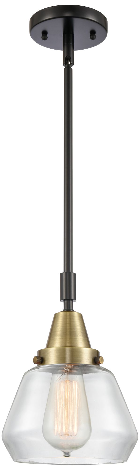 Caden Fulton 7" Wide Black Brass Stem Hung Mini Pendant w/ Clear Shade