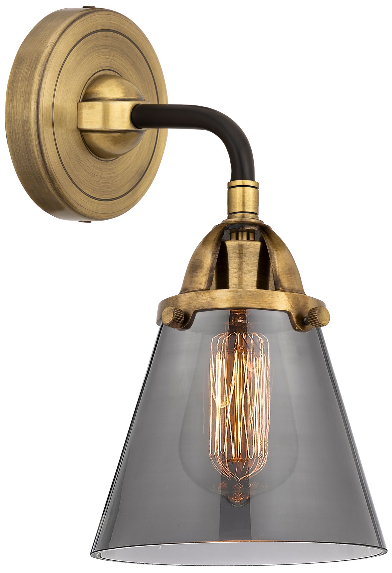 Nouveau 2 Cone 6" Incandescent Sconce - Black Brass - Plated Smoke Sha