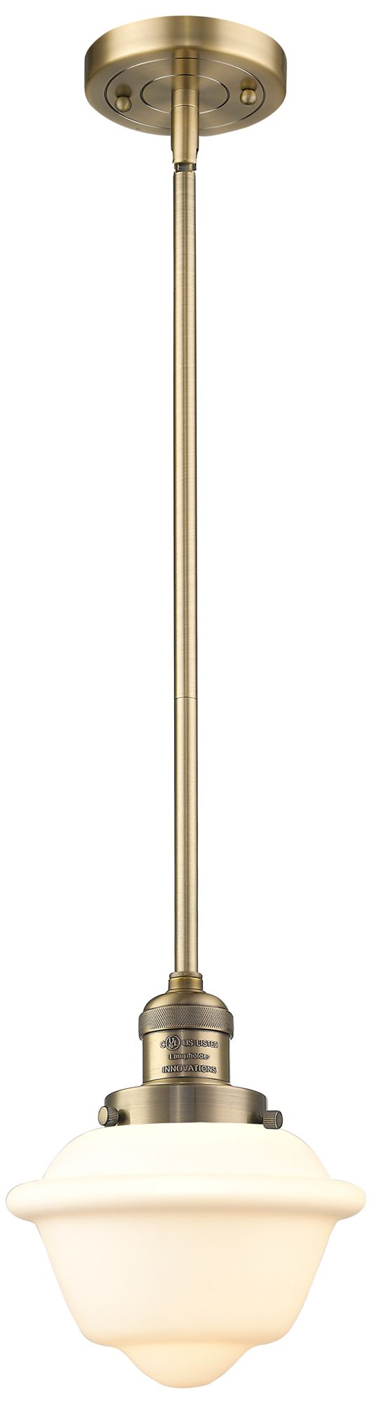 Franklin Oxford 8" Brushed Brass Stemmed Mini Pendant w/ White Shade