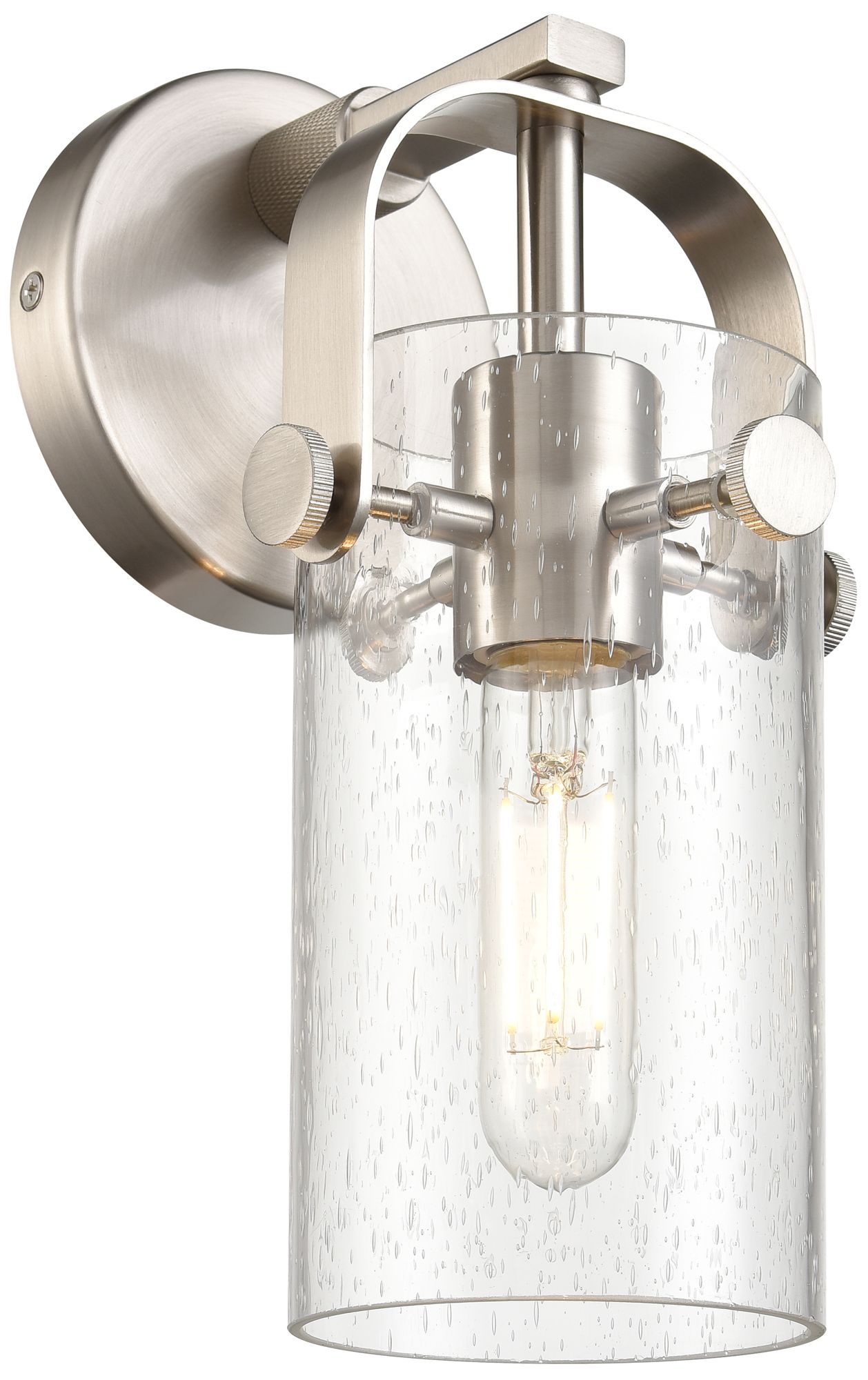 Pilaster II Cylinder 10.5" High Satin Nickel Sconce With Seedy Shade