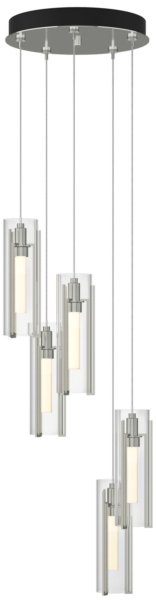 Exos Glass 13.5" Wide 5-Light Sterling Standard Pendant w/ Clear Shade