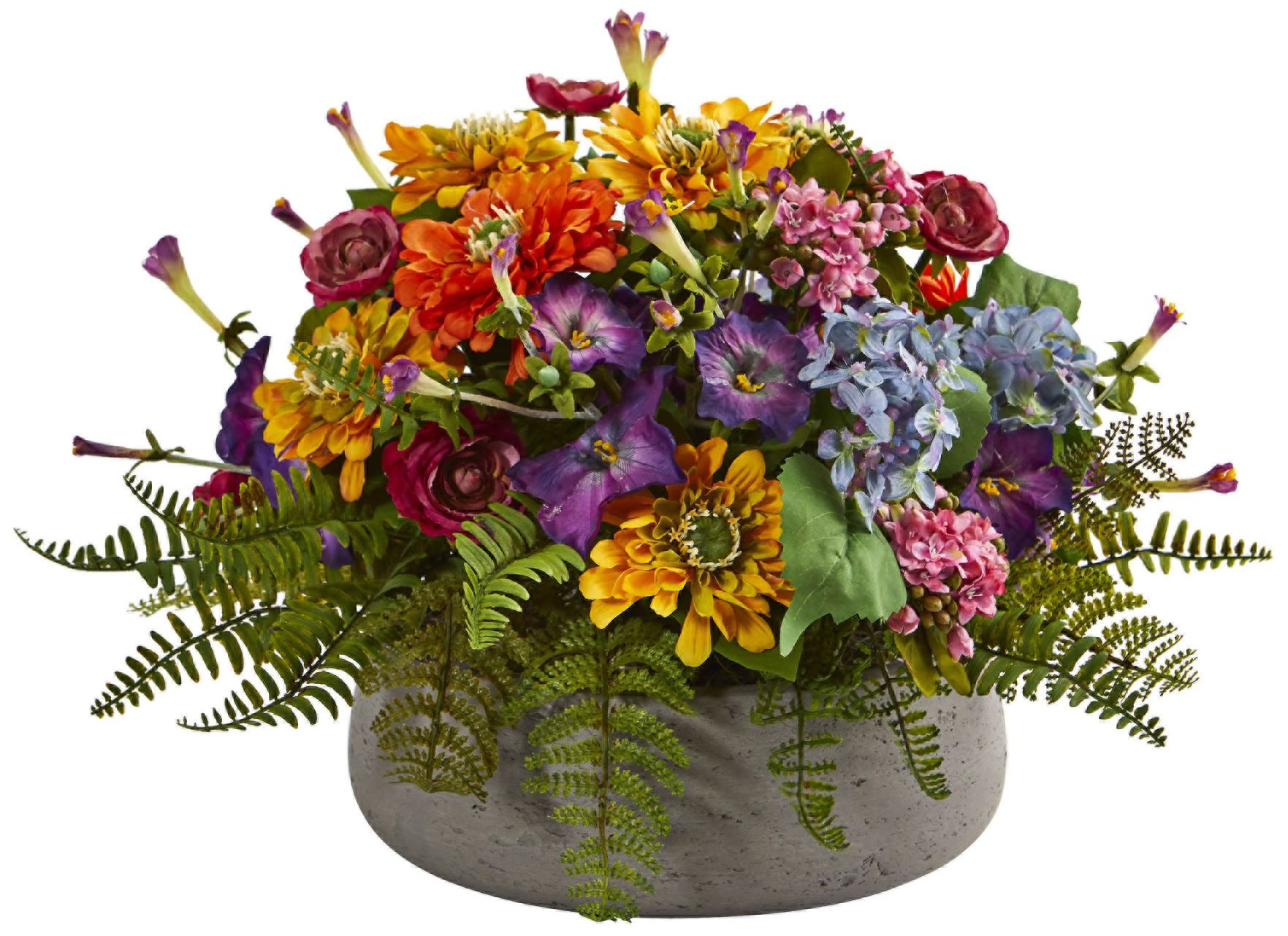 Mixed Floral 14"W Artificial Arrangement in Stone Planter
