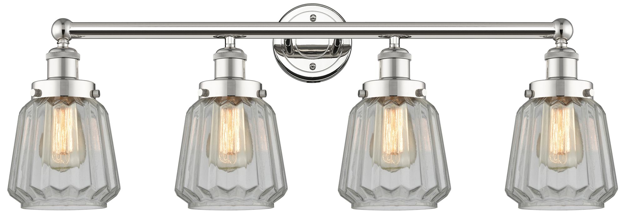 Chatham 33.5"W 4 Light Polished Nickel Bath Vanity Light With White Sh