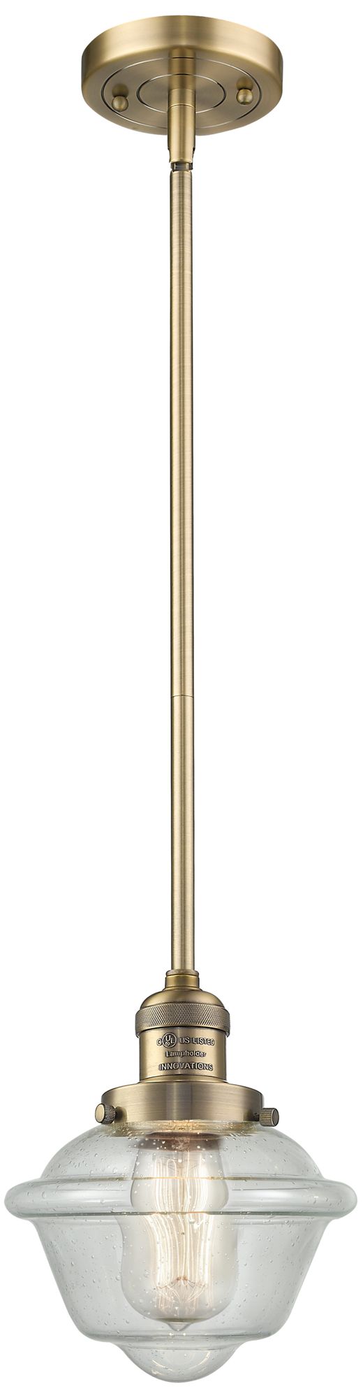 Franklin Oxford 8" Brushed Brass Stemmed Mini Pendant w/ Seedy Shade