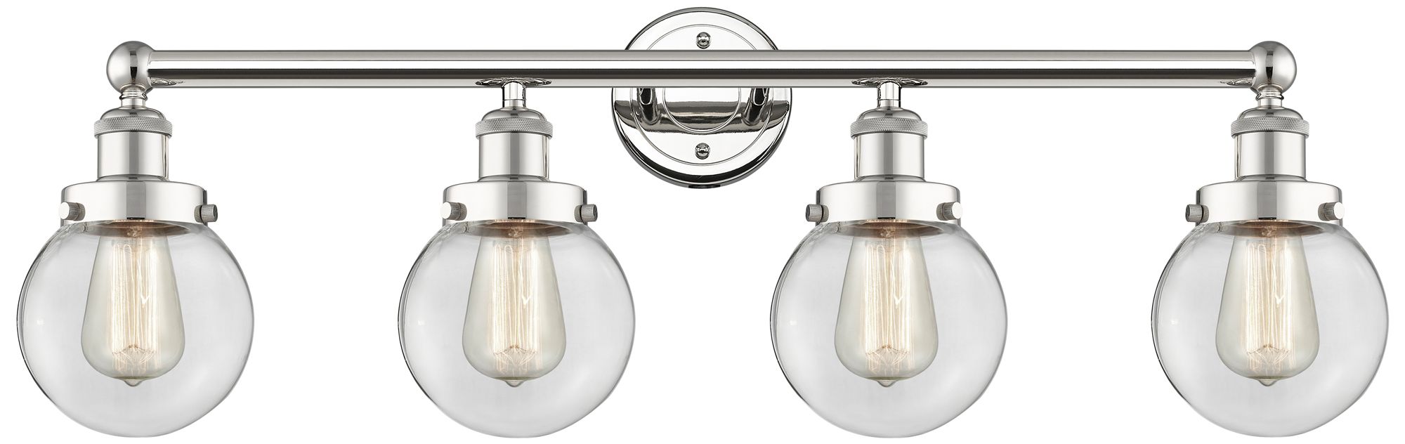 Small Beacon 33.5"W 4 Light Polished Nickel Bath Light With Clear Shad