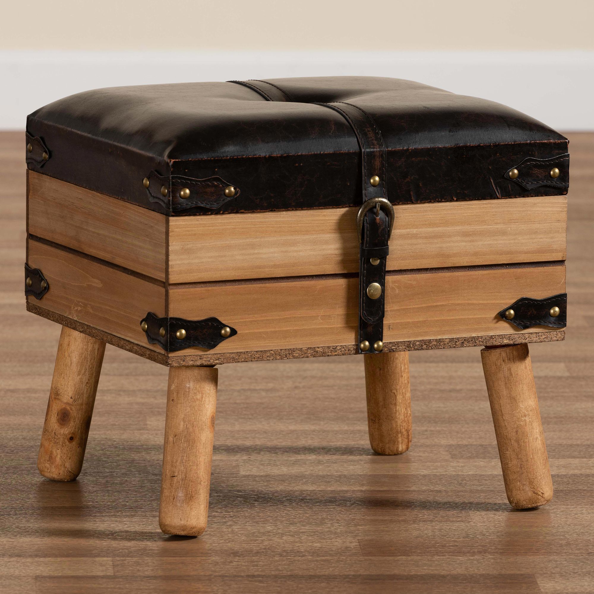 Amena 15 3/4"W Dark Brown Faux Leather Ottoman with Storage