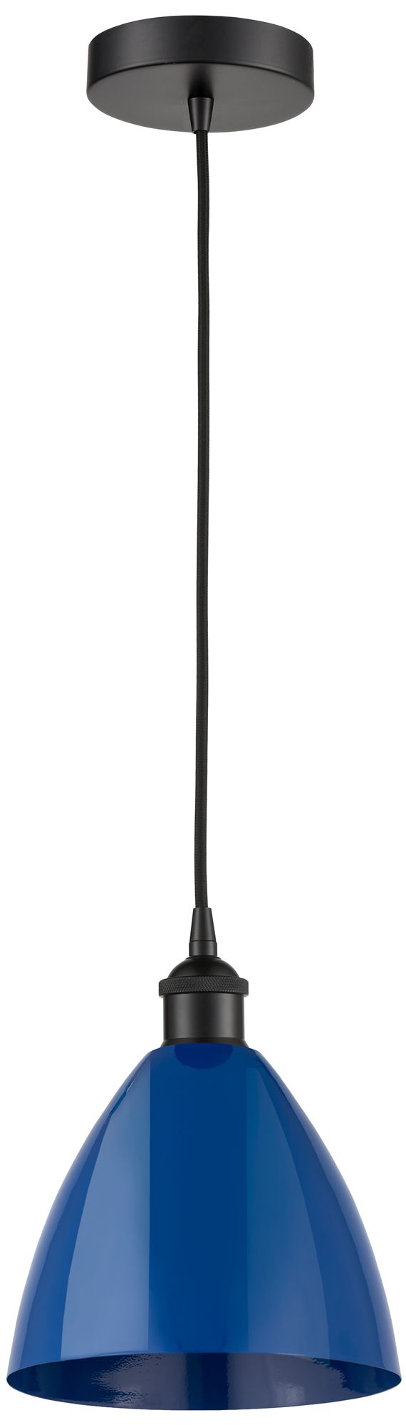 Plymouth Dome 7.5" Wide Matte Black Corded Mini Pendant w/ Blue Shade