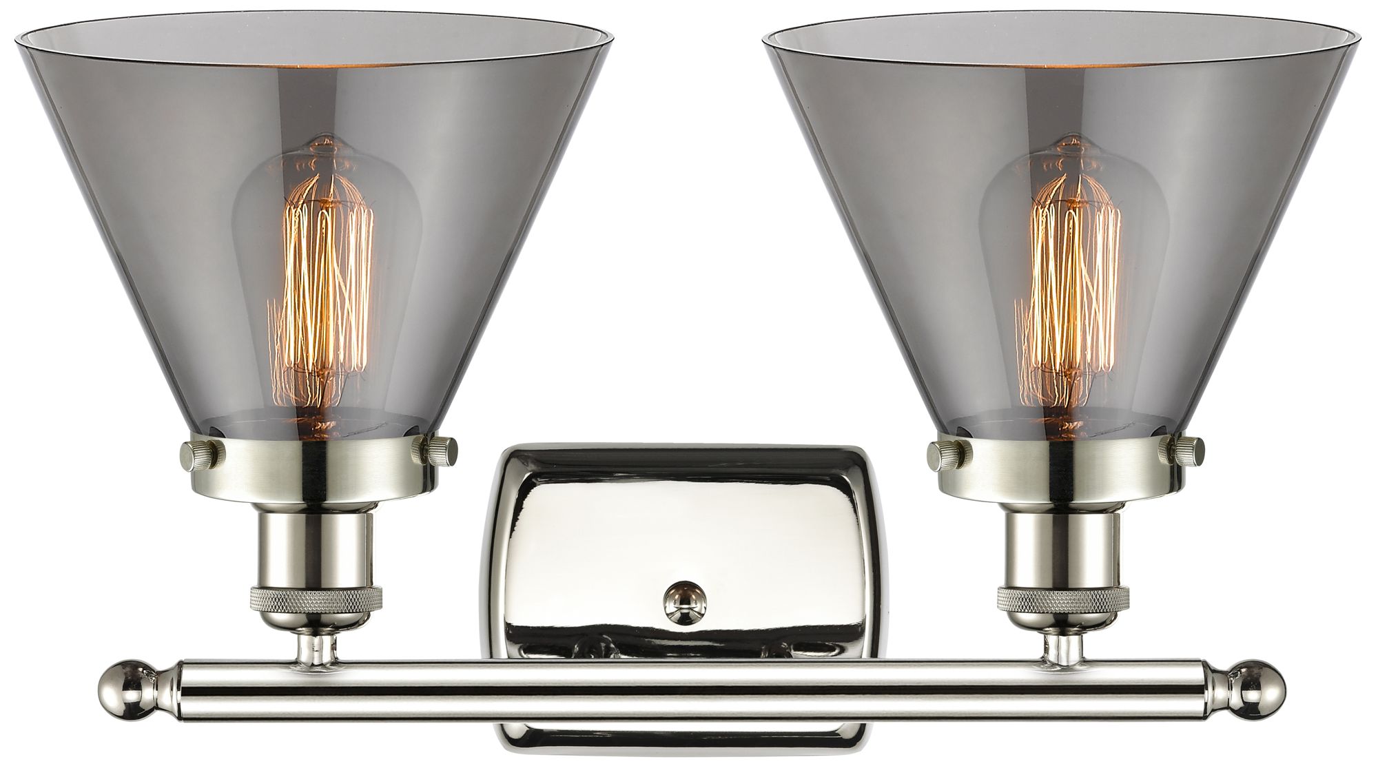 Ballston Urban Cone 18" 2 Light Nickel Bath Light w/ Smoke Shade