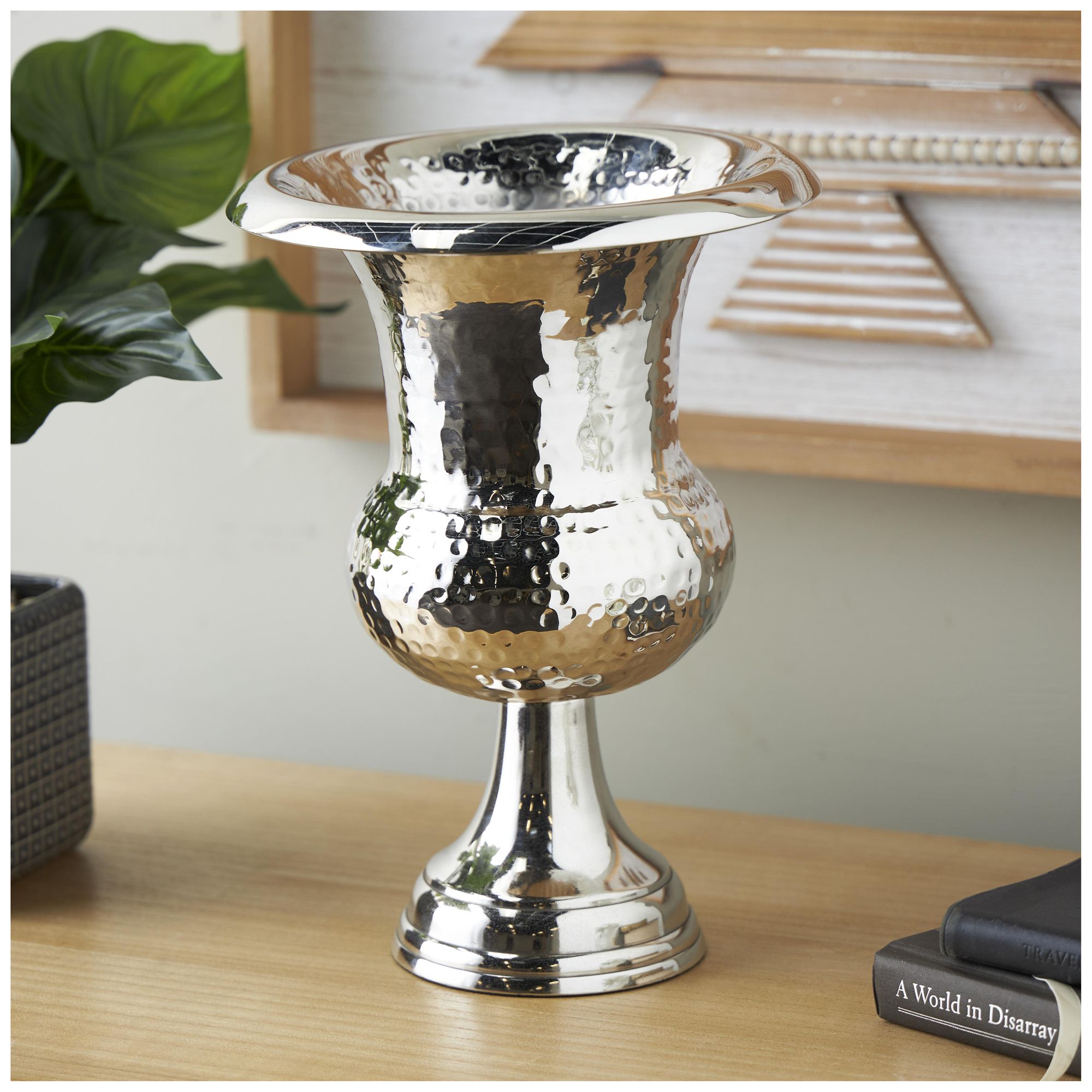 Silver Aluminum Metal Glam Vase, 9" x 9" x 13"