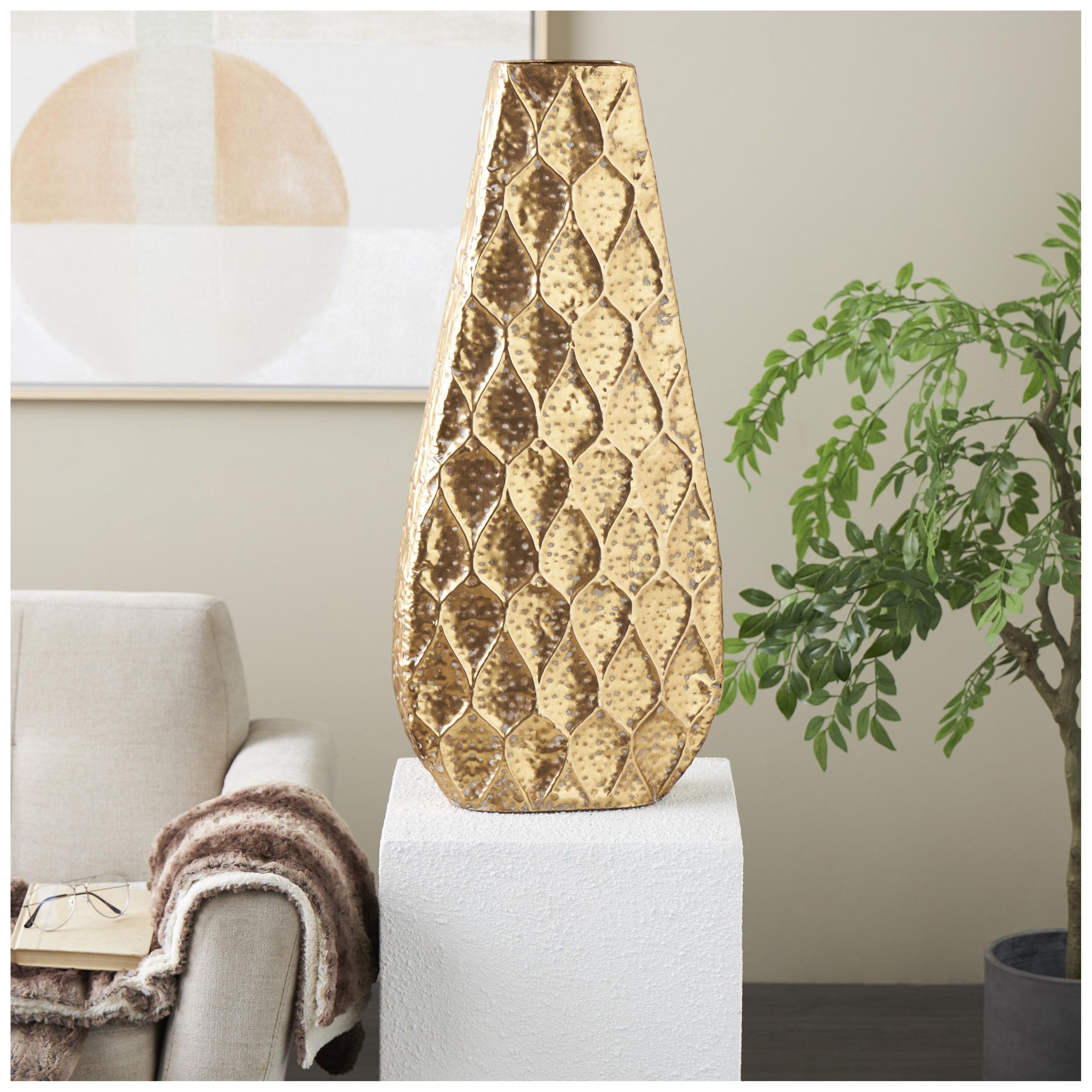 Gold Metal Contemporary Vase, 15" x 4" x 34"