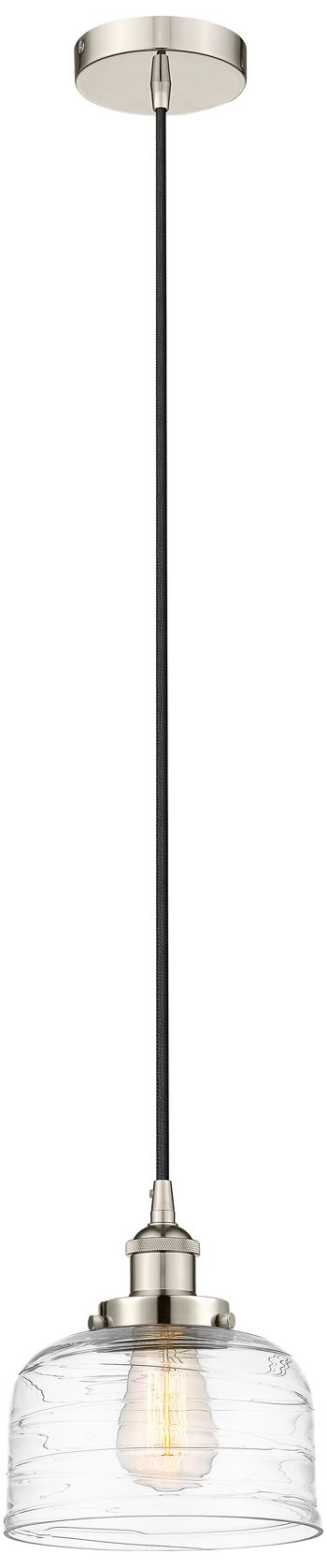 Bell 8" Polished Nickel Mini Pendant w/ Clear Deco Swirl Shade